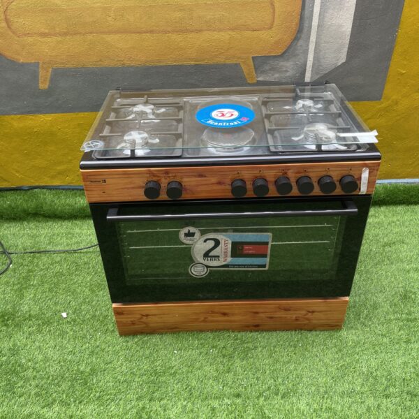 Brand New Scanfrost 90×60 4 Gas Burner + 2 Electric Hotplate Standing Cooker Wood Finish(SFC9425NGF)