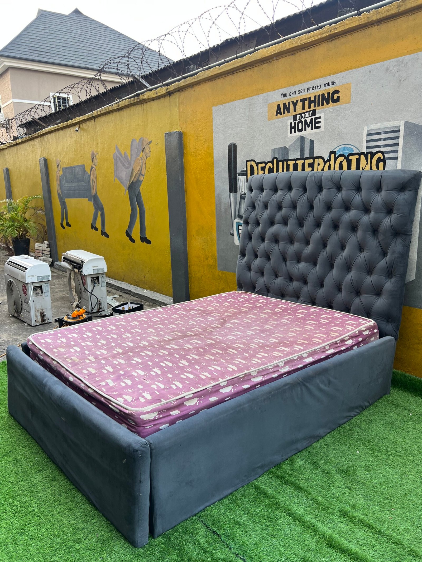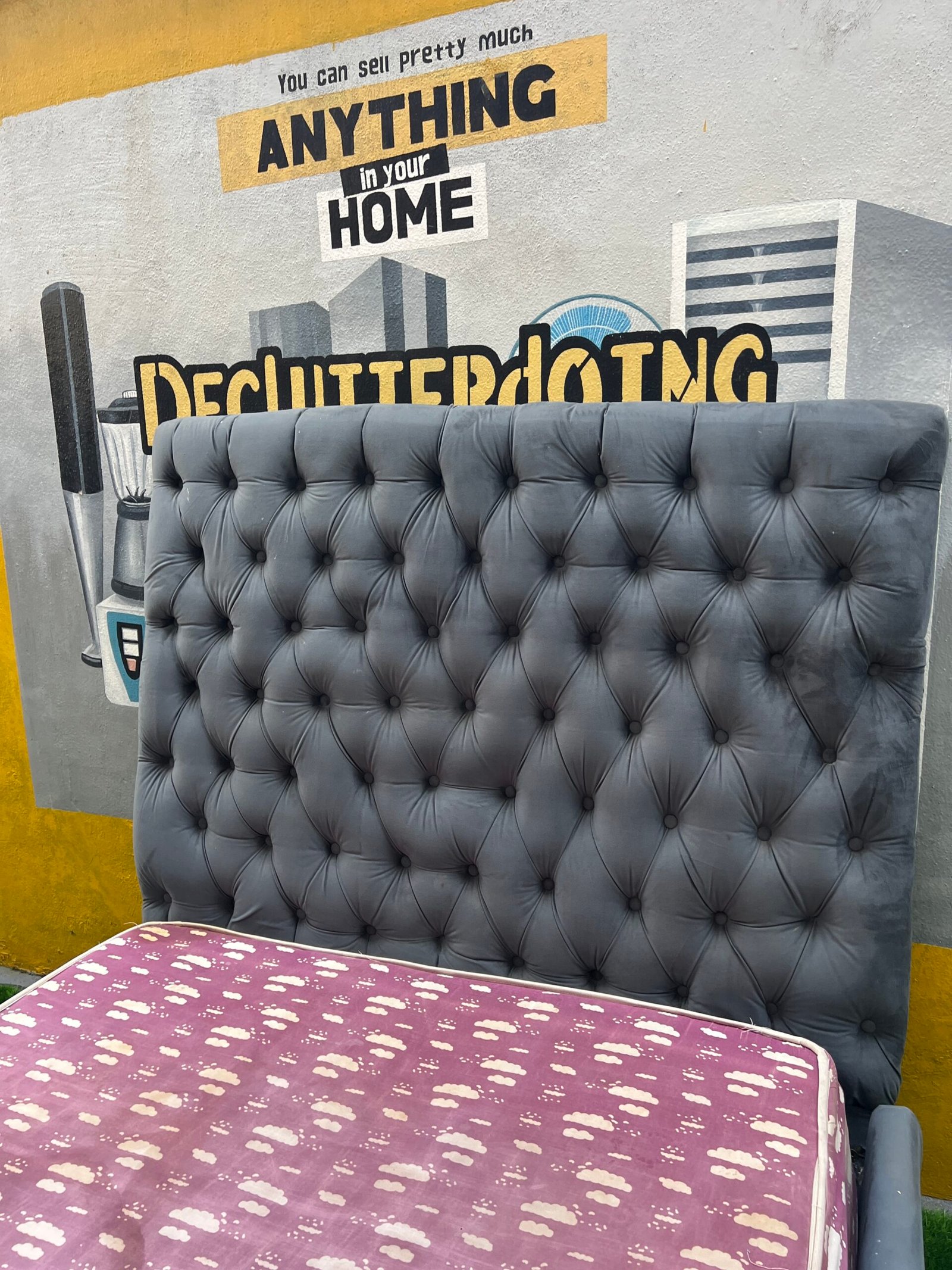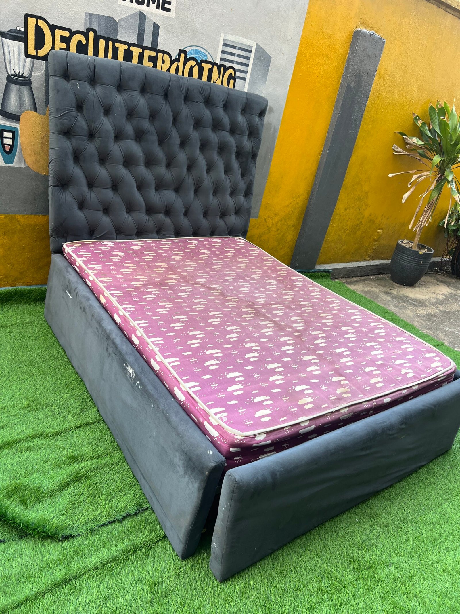 Barely Used 4.5by6 Grey Upholstrey Bedframe With Semi Orthopedic Mattress