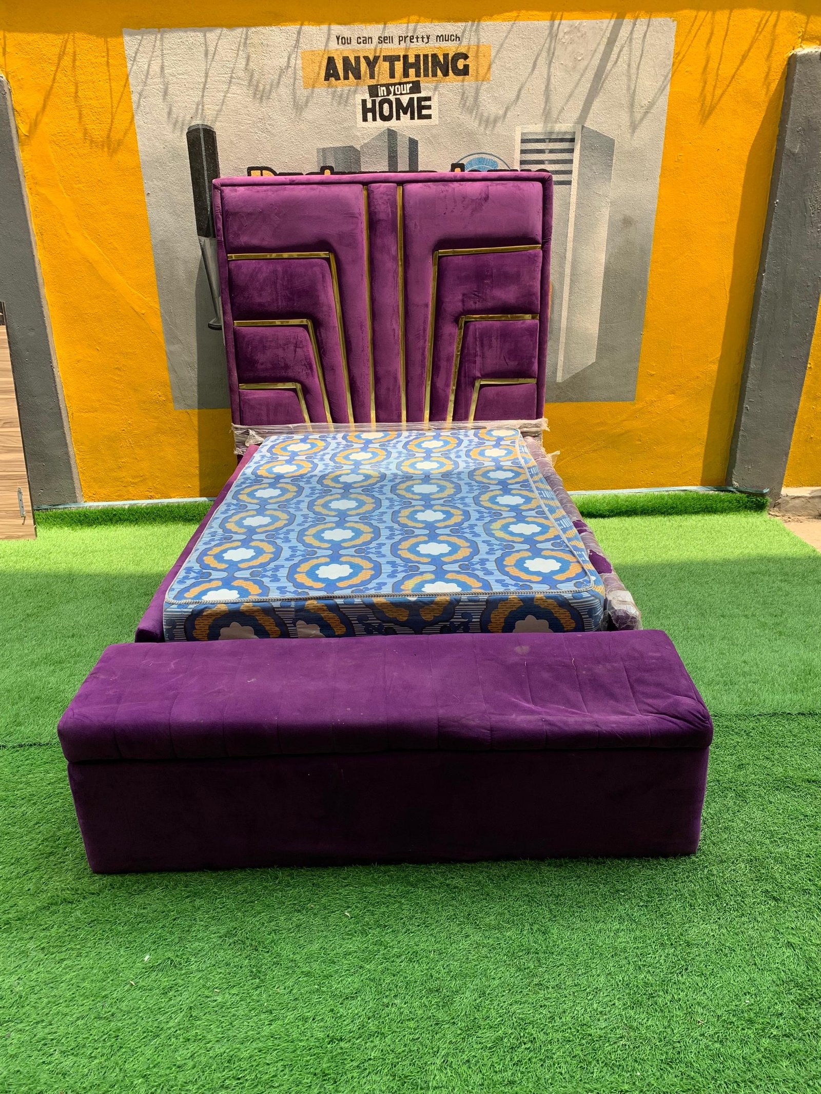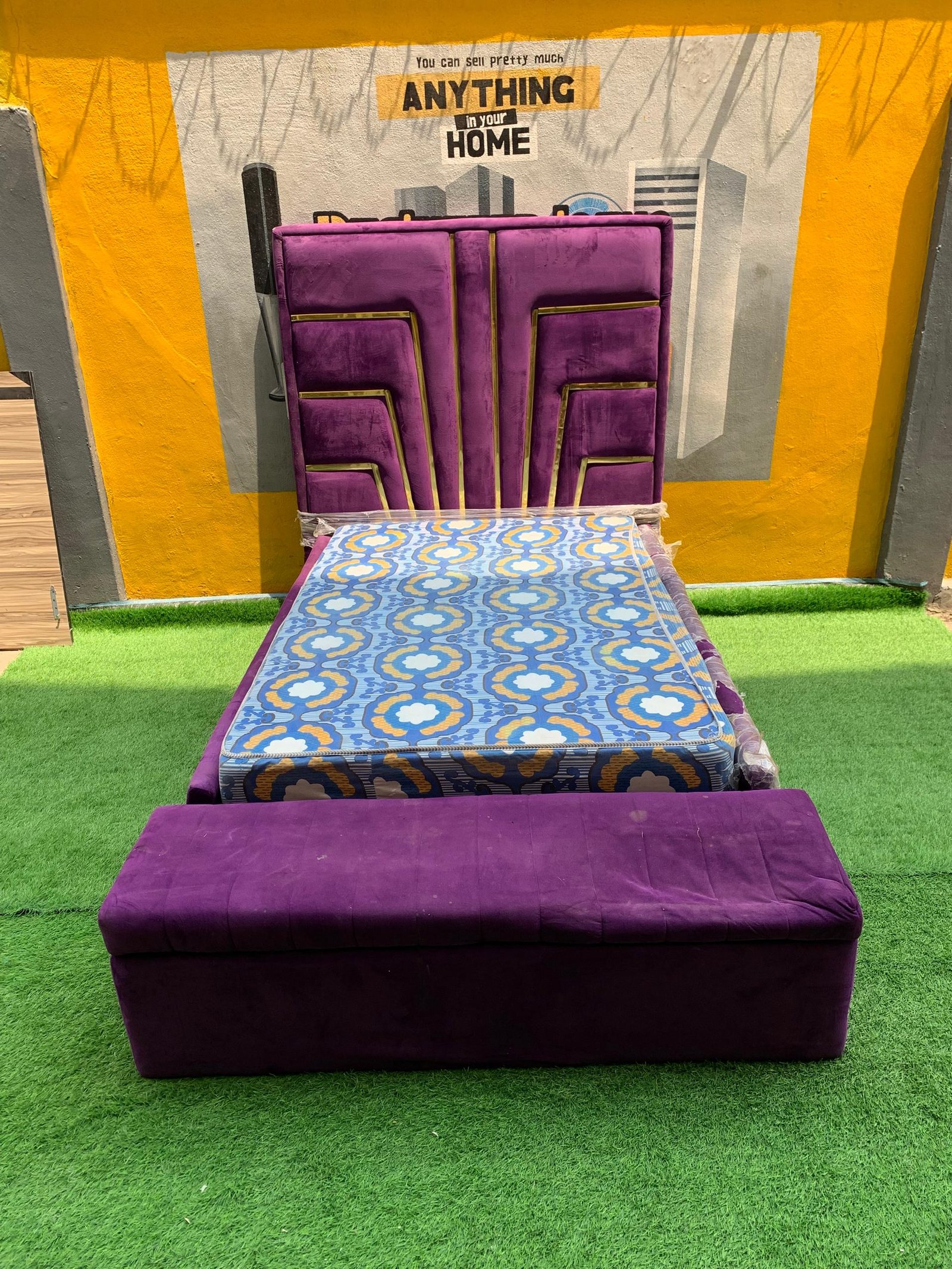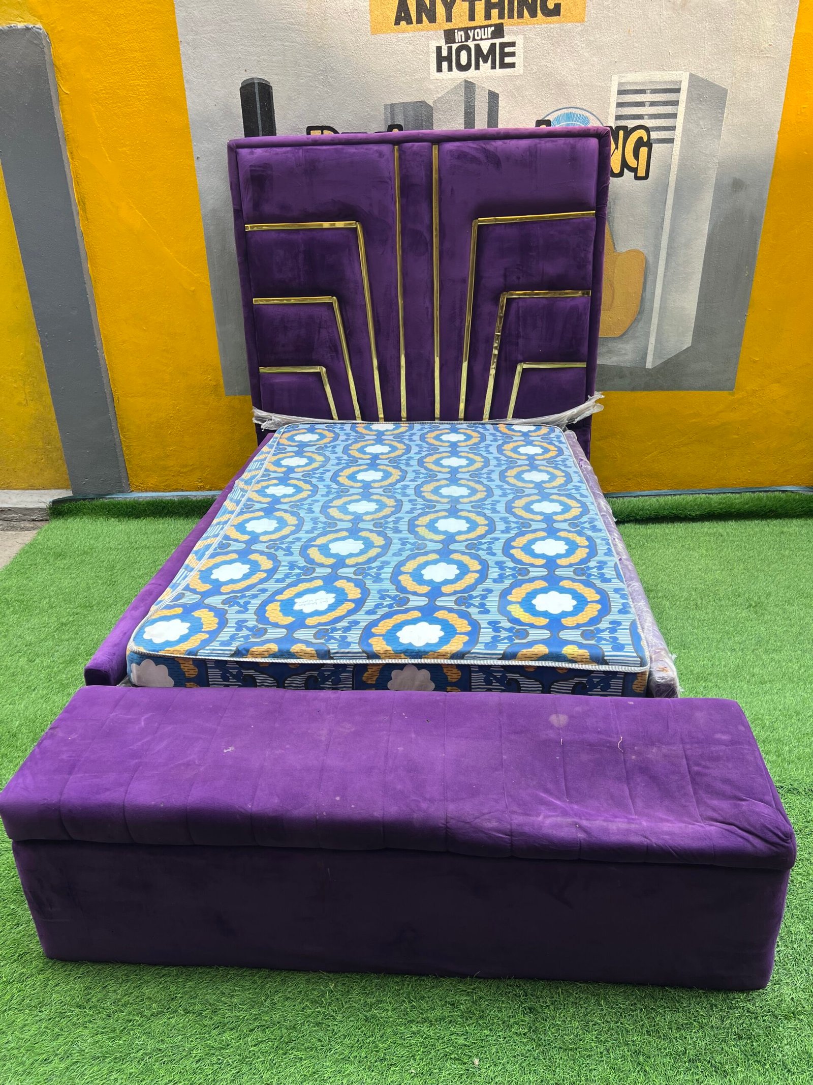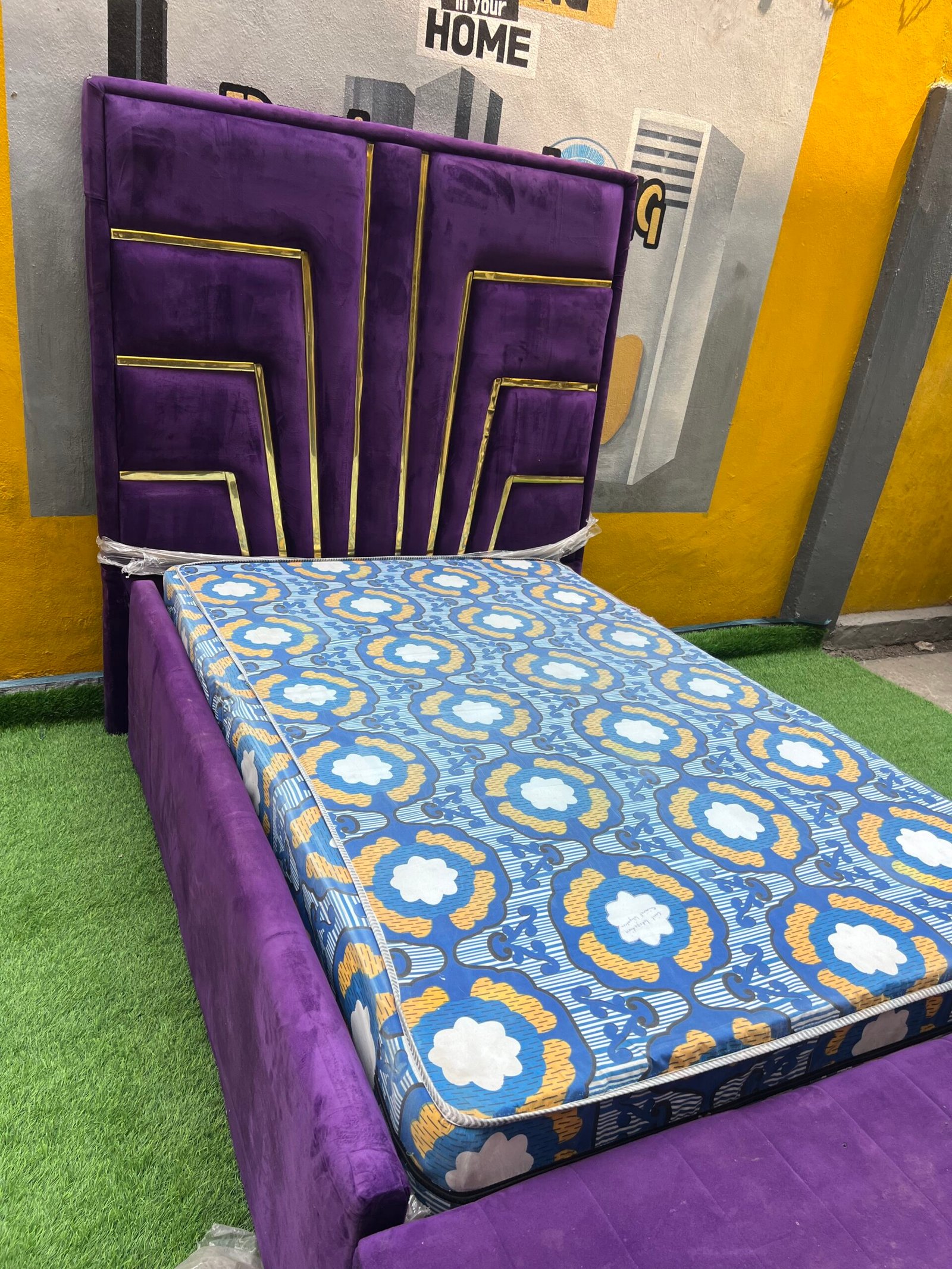 2 Month Used 7by7 8.5ft Upholstery Fully Padded Bedframe With Mattress