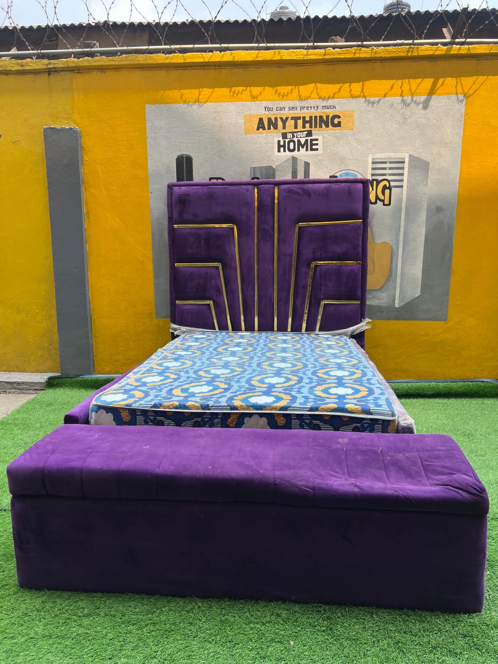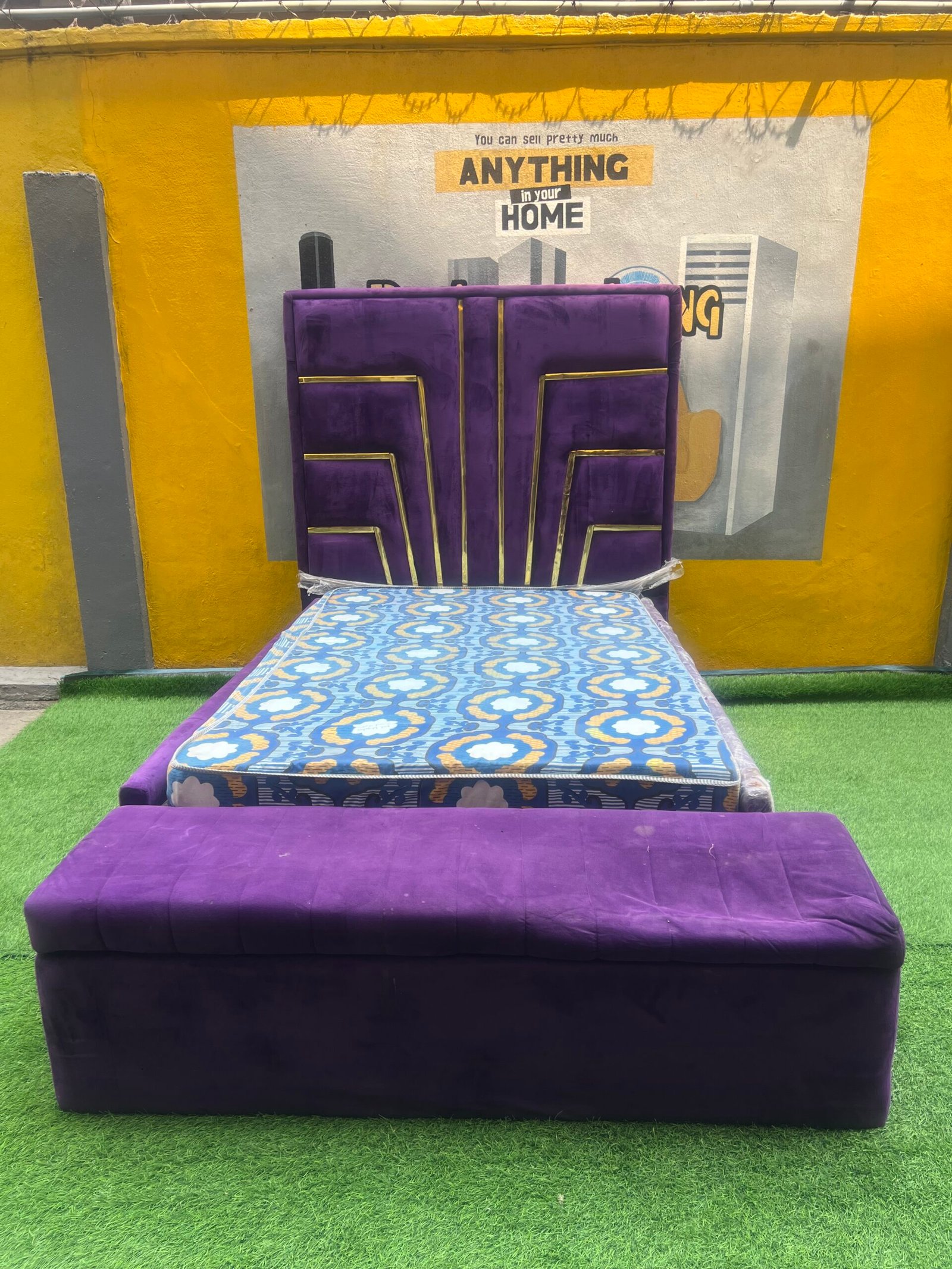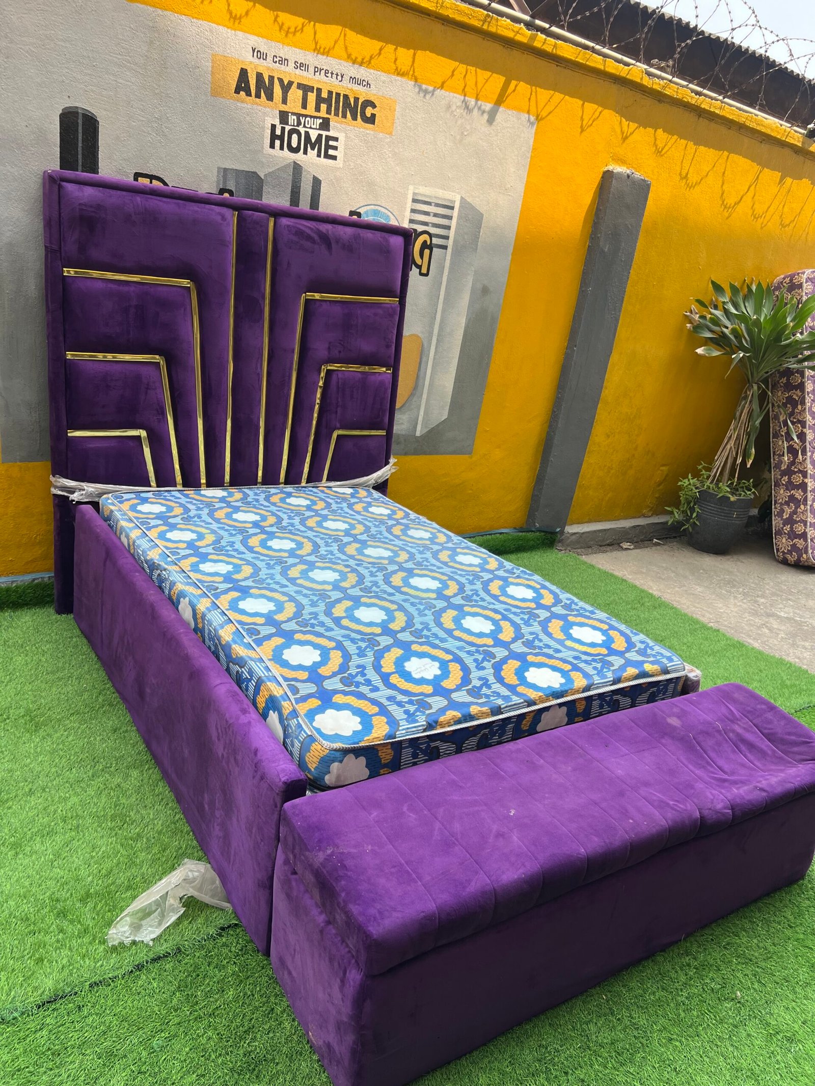 2 Month Used 7by7 8.5ft Upholstery Fully Padded Bedframe With Mattress