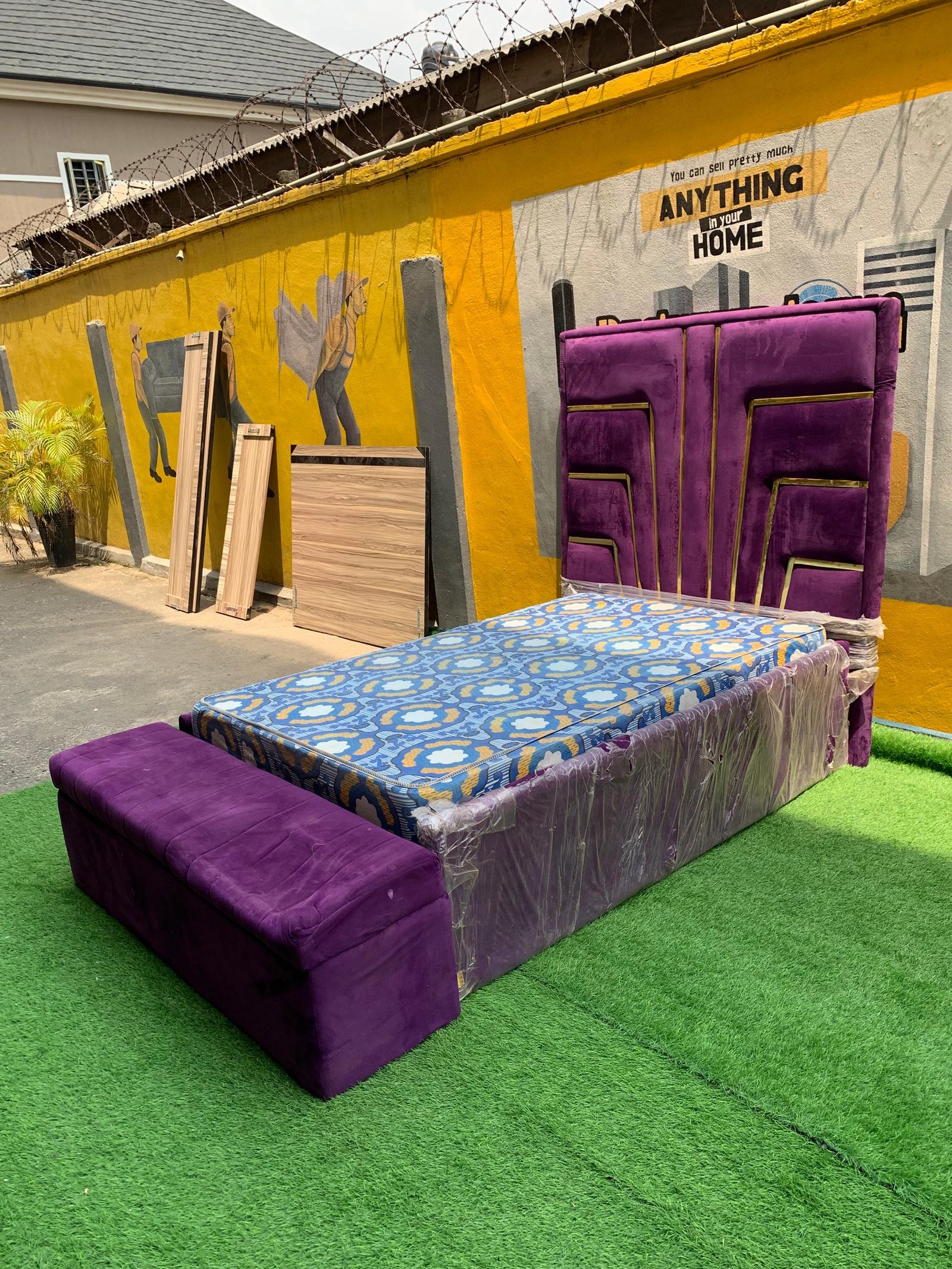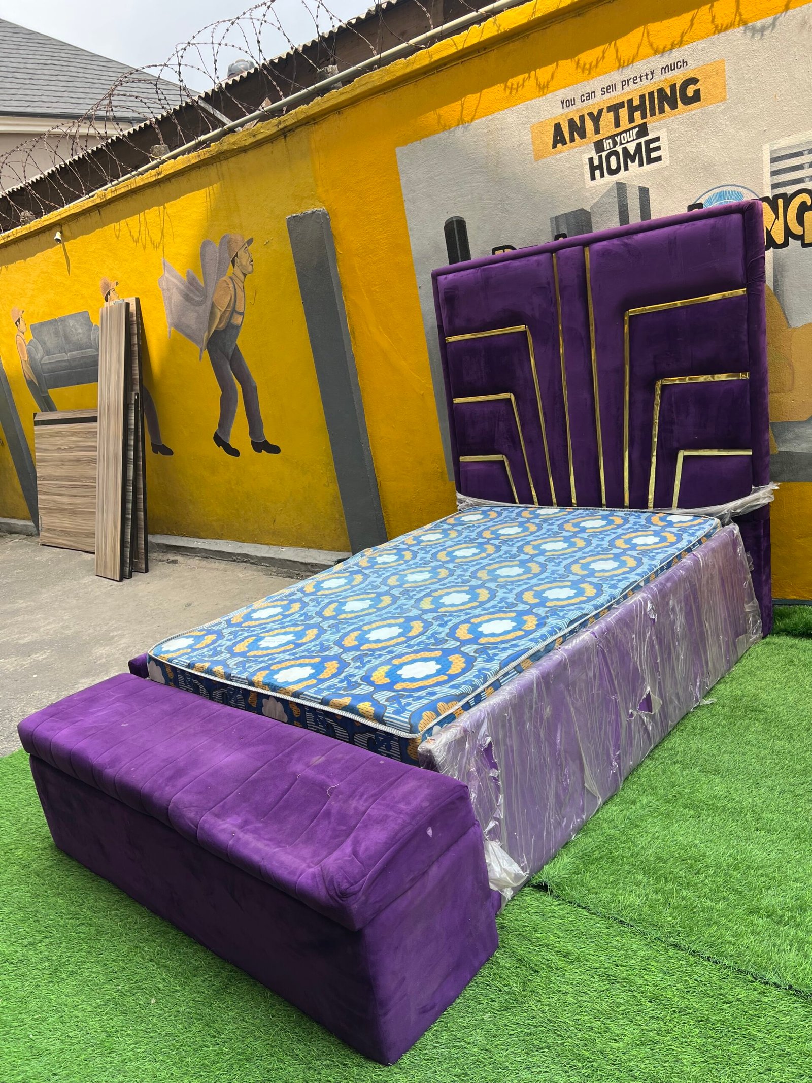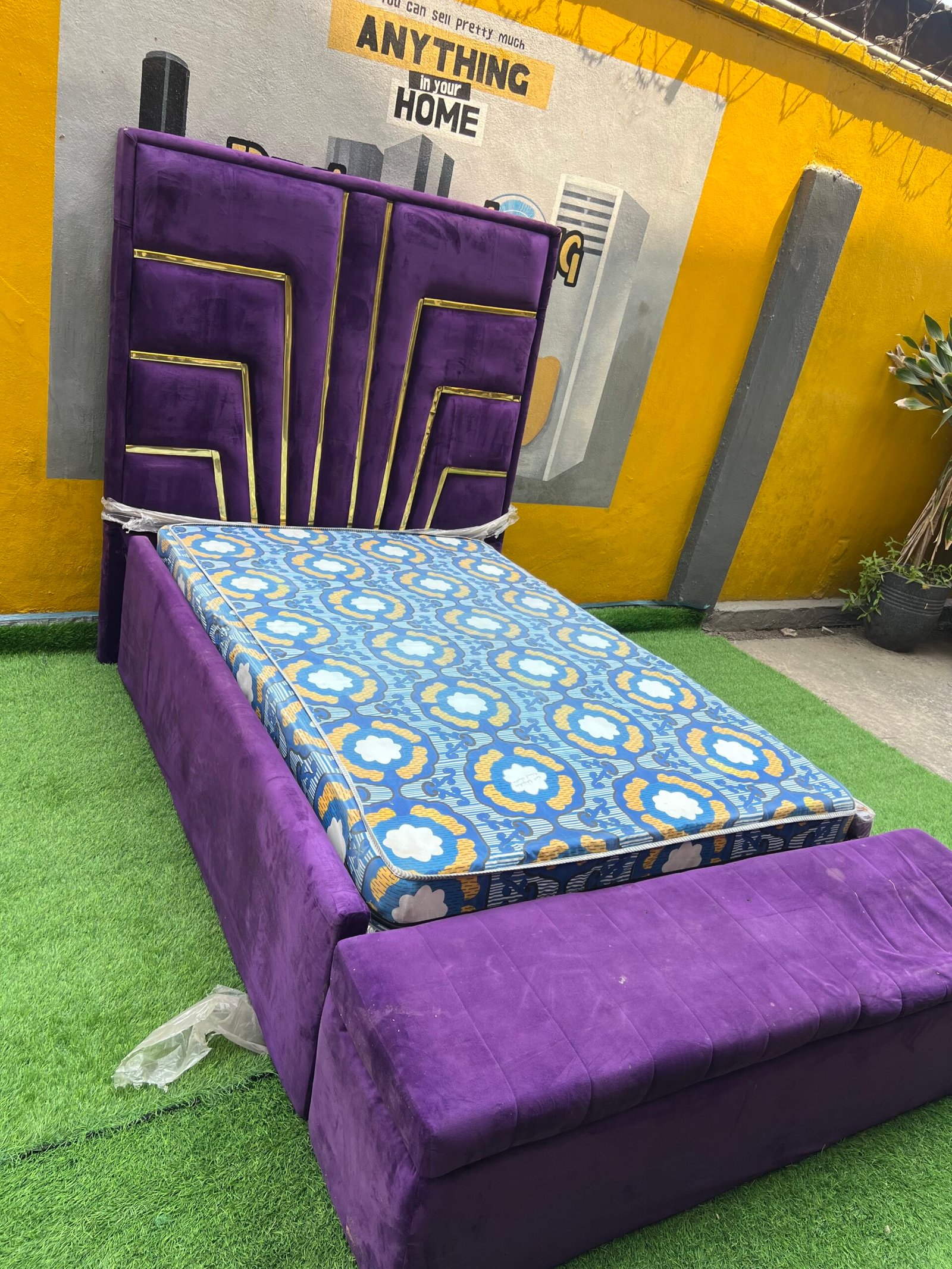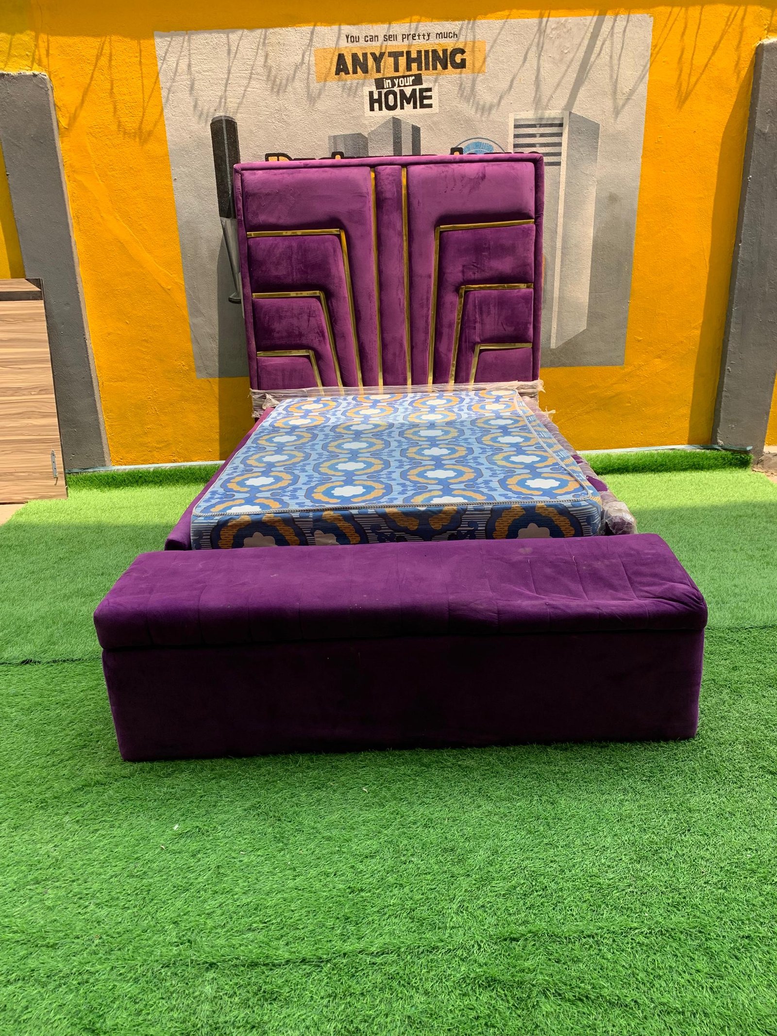 2 Month Used 7by7 8.5ft Upholstery Fully Padded Bedframe With Mattress