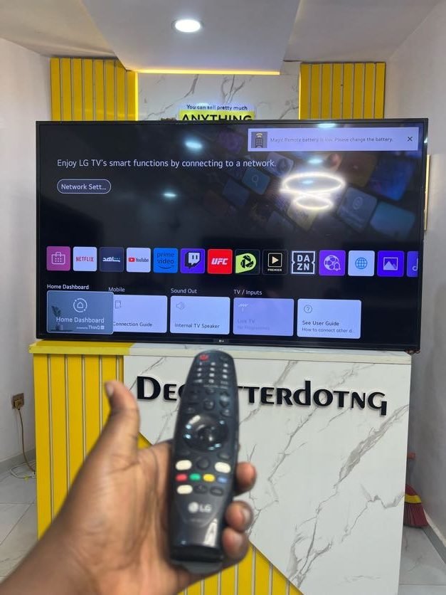 ₦120,000.00 Exc. VATBarely UsedBARELY USED LG 60″ THINQ AI 4K UHD SMART TV (60UN7100PVA) (tiny faint line on it but deos not affect the tv)