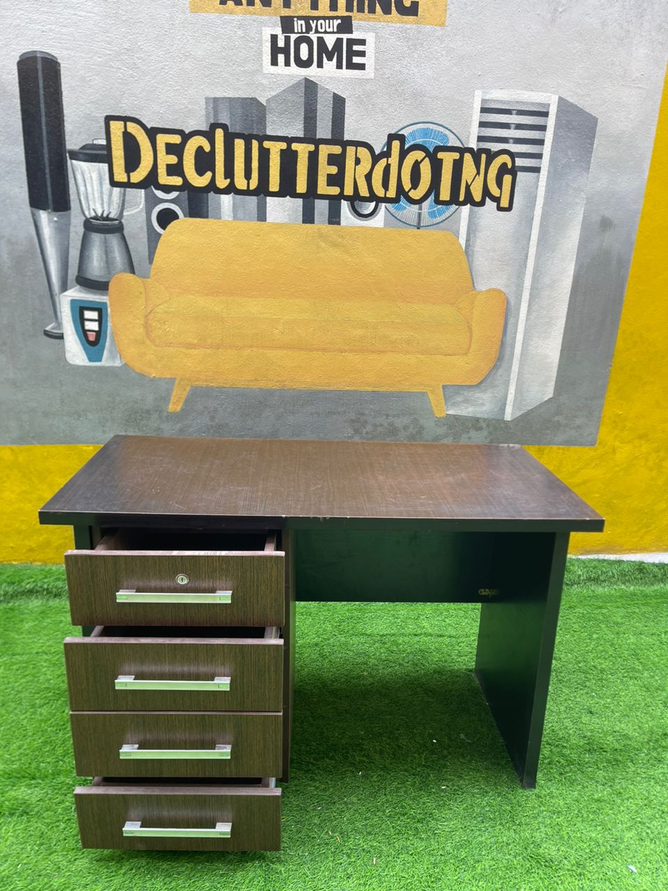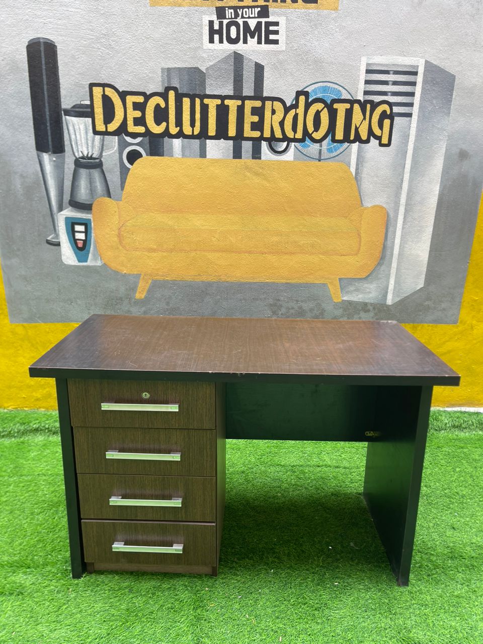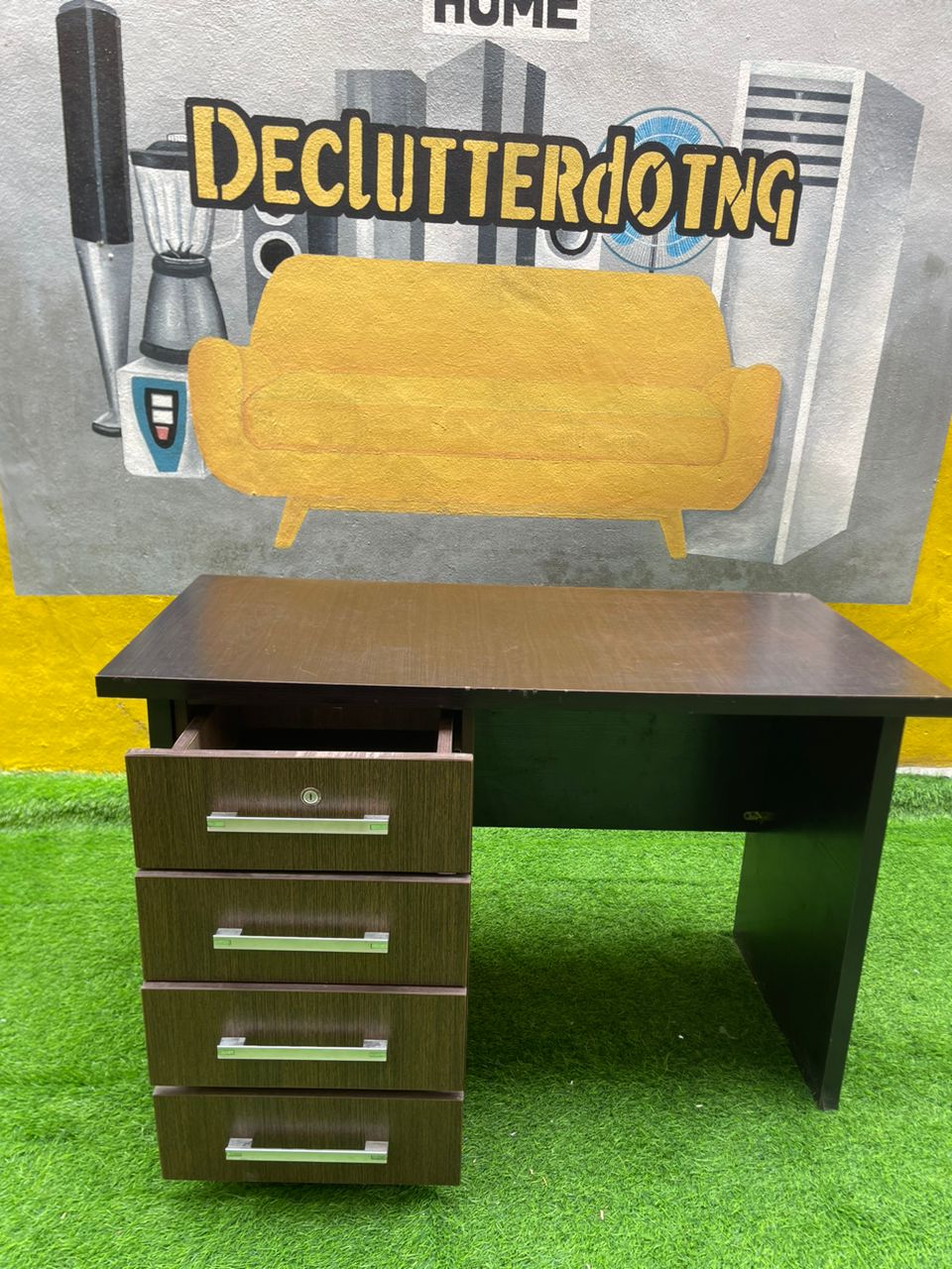 Barely Used Brown Top Quality Office Table With Chest Drawer
