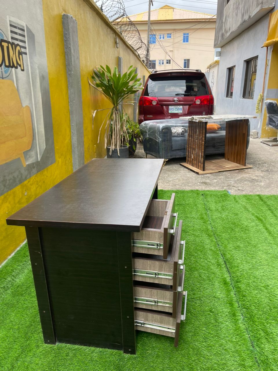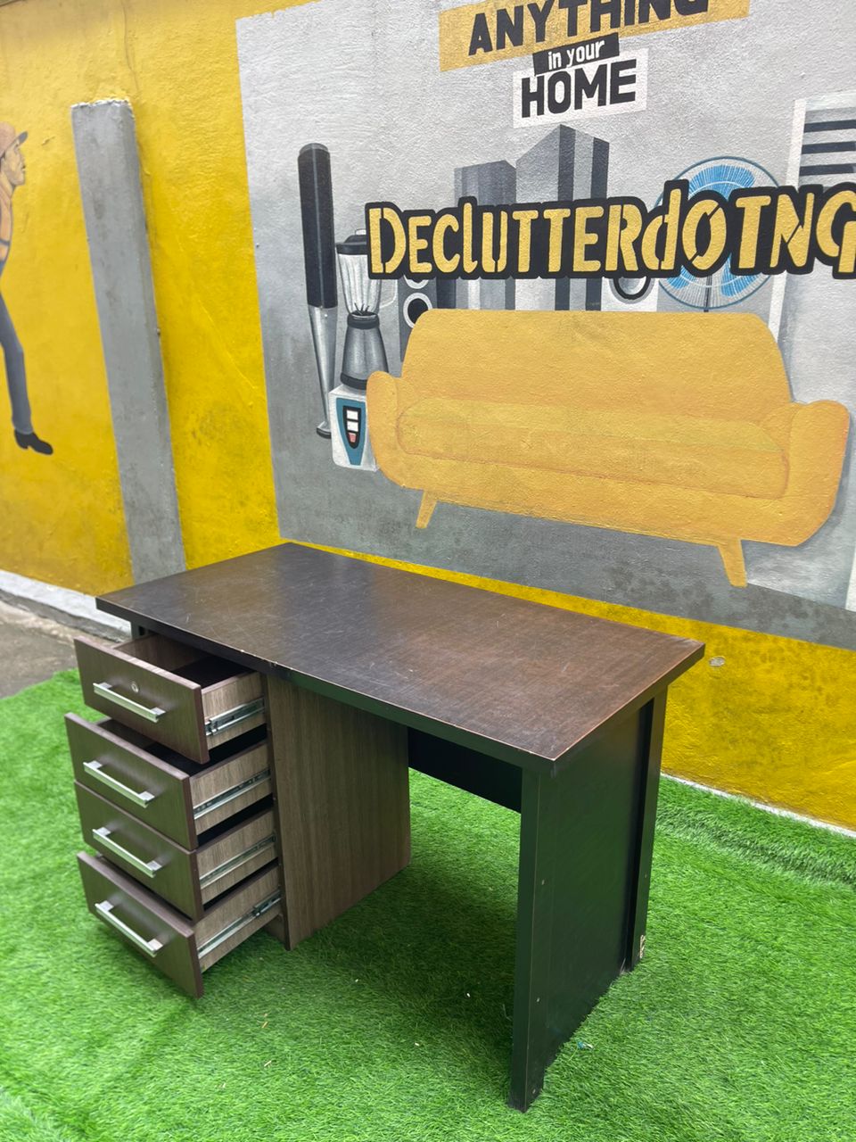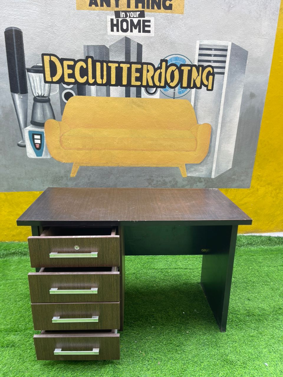 Barely Used Brown Top Quality Office Table With Chest Drawer