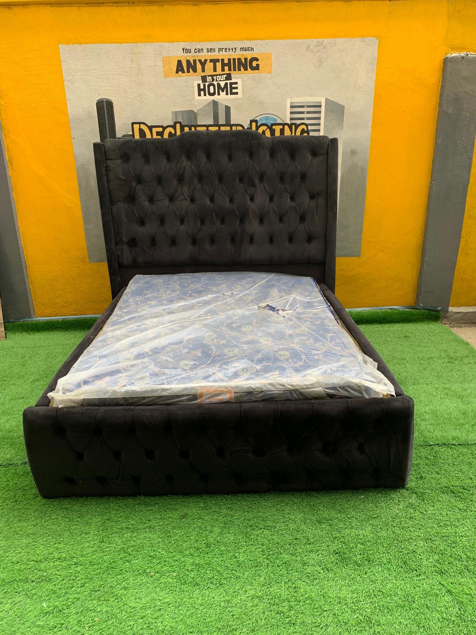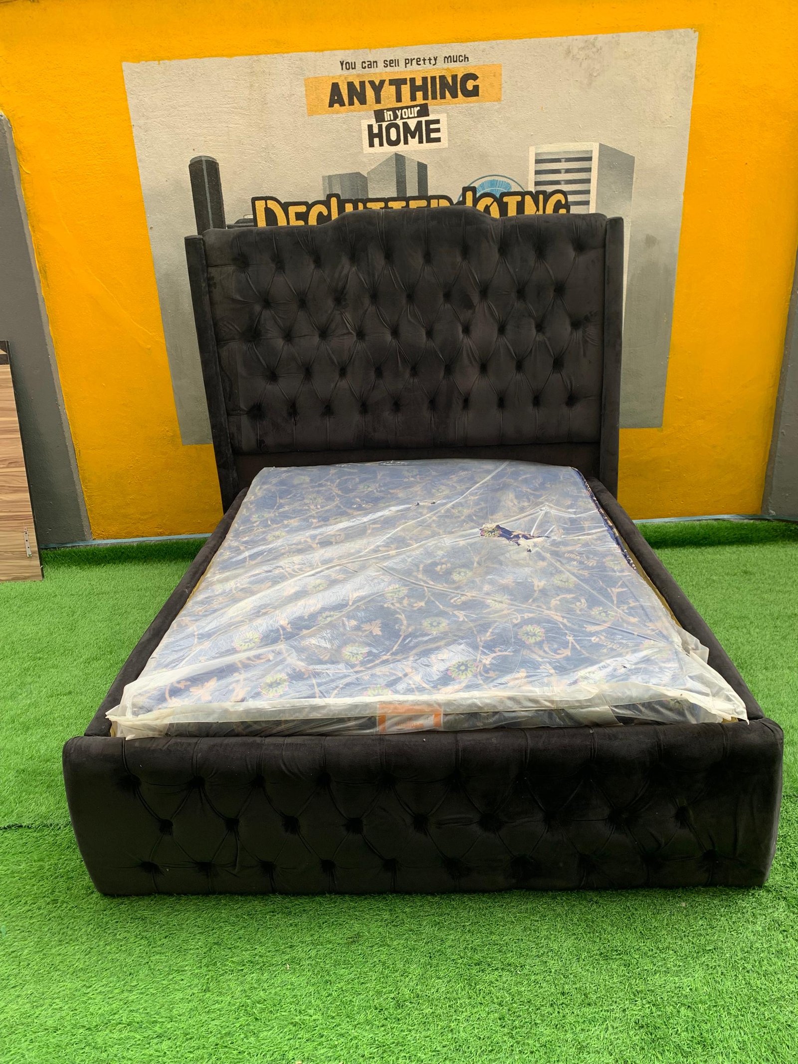 2 Month Used 7by7 8.5ft Upholstery Fully Padded Bedframe With Mattress