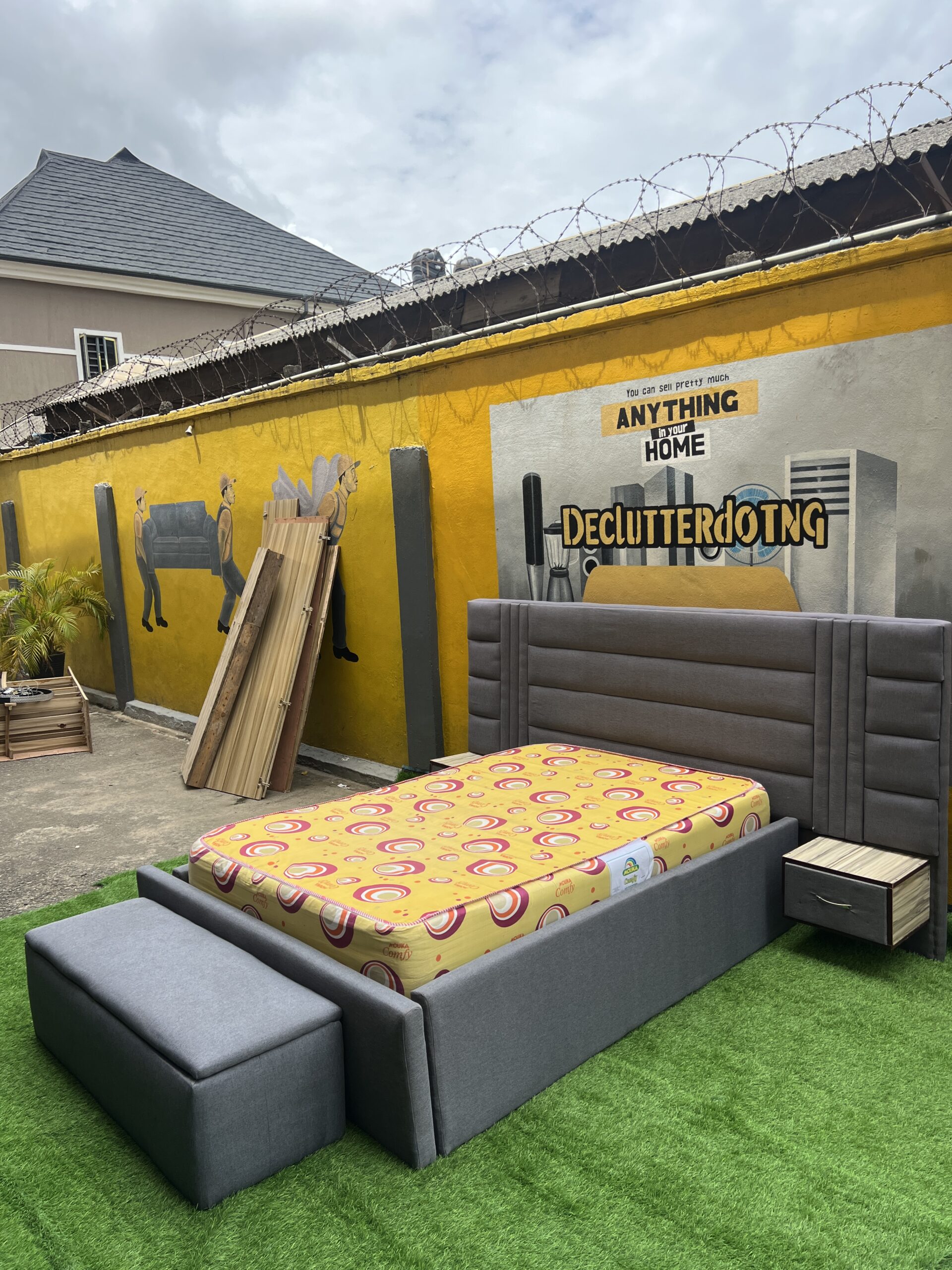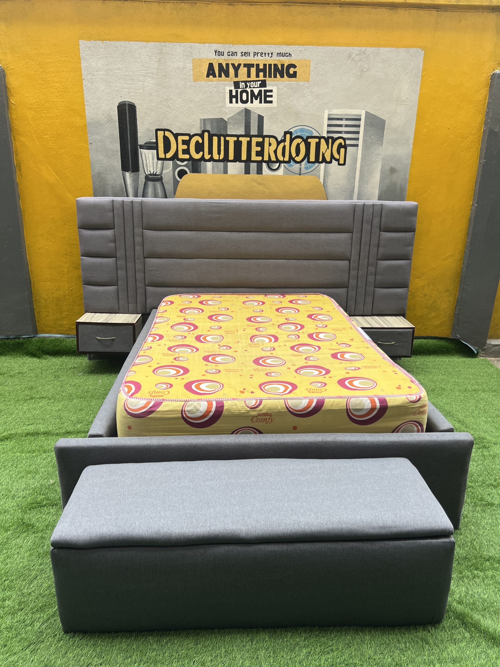 Brand New TOP QUALITY 4.5by6 Bedframe With Used Matrass ,Ottoman And Side Drawers