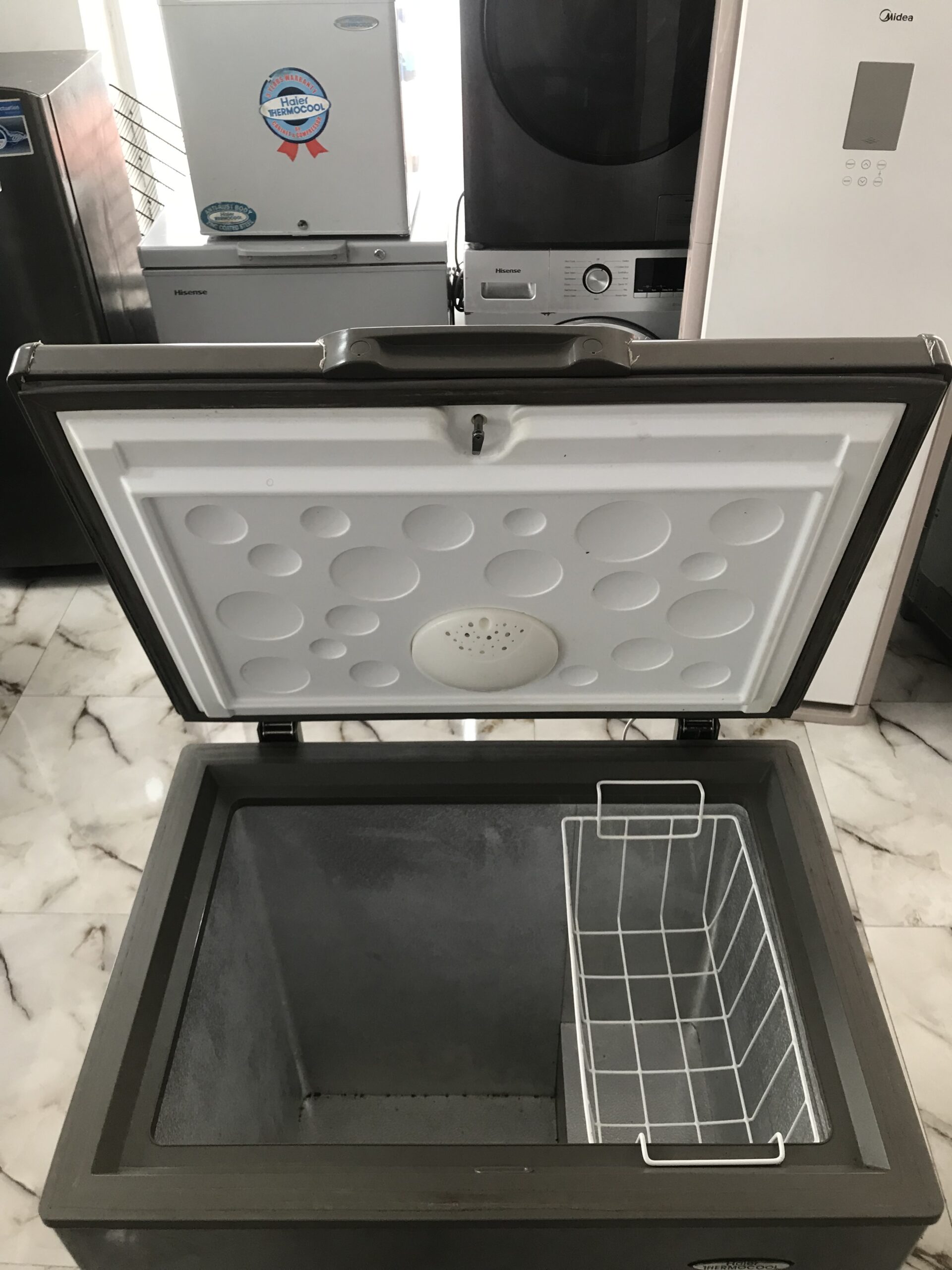 A chest freezer is mainly designed for stocking frozen food items in massive quantities. Chest freezers offer several benefits to the user regarding price, storage capacity and energy efficiency. The Haier Thermocool Small 150 Liters Chest Freezer is one that can boast of all the above features and benefits.
