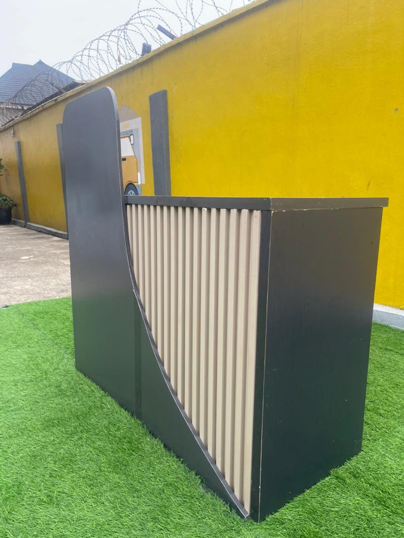 Neatly Used Dark Grey & Cream Reception Desk with Two Drawers