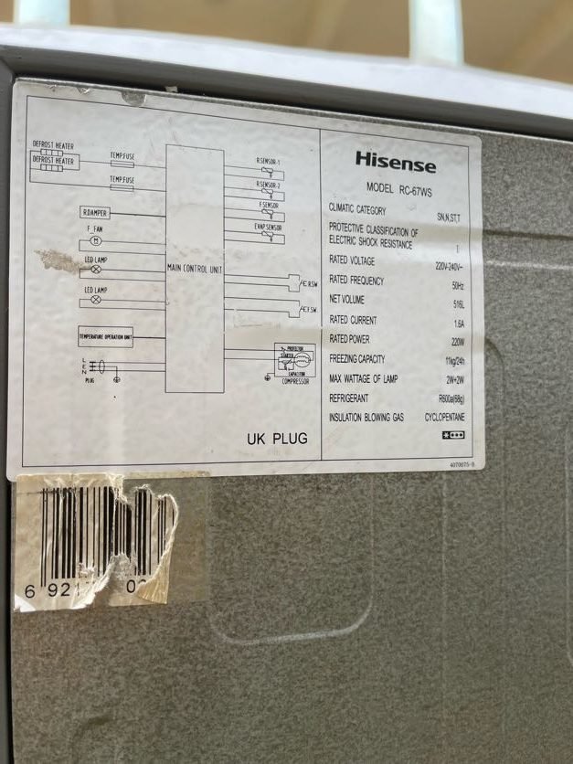 Neatly Used Hisense 67WS 516L Side by Side Refrigerator