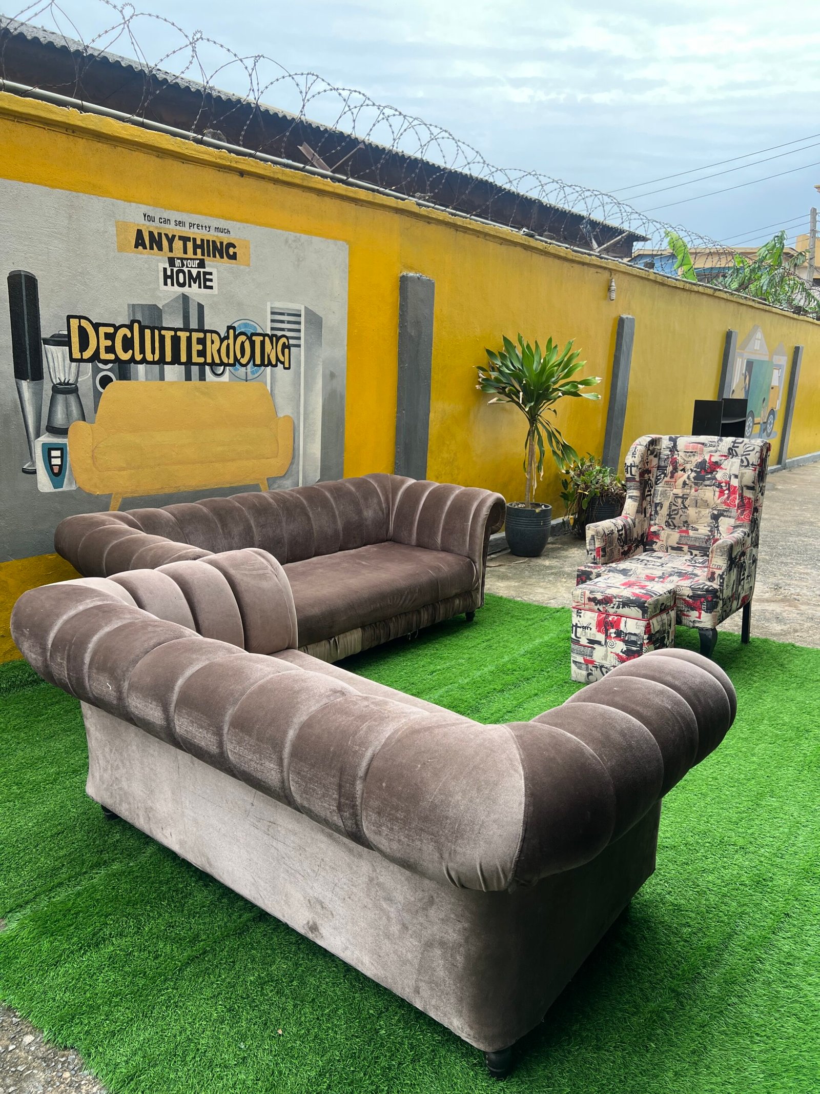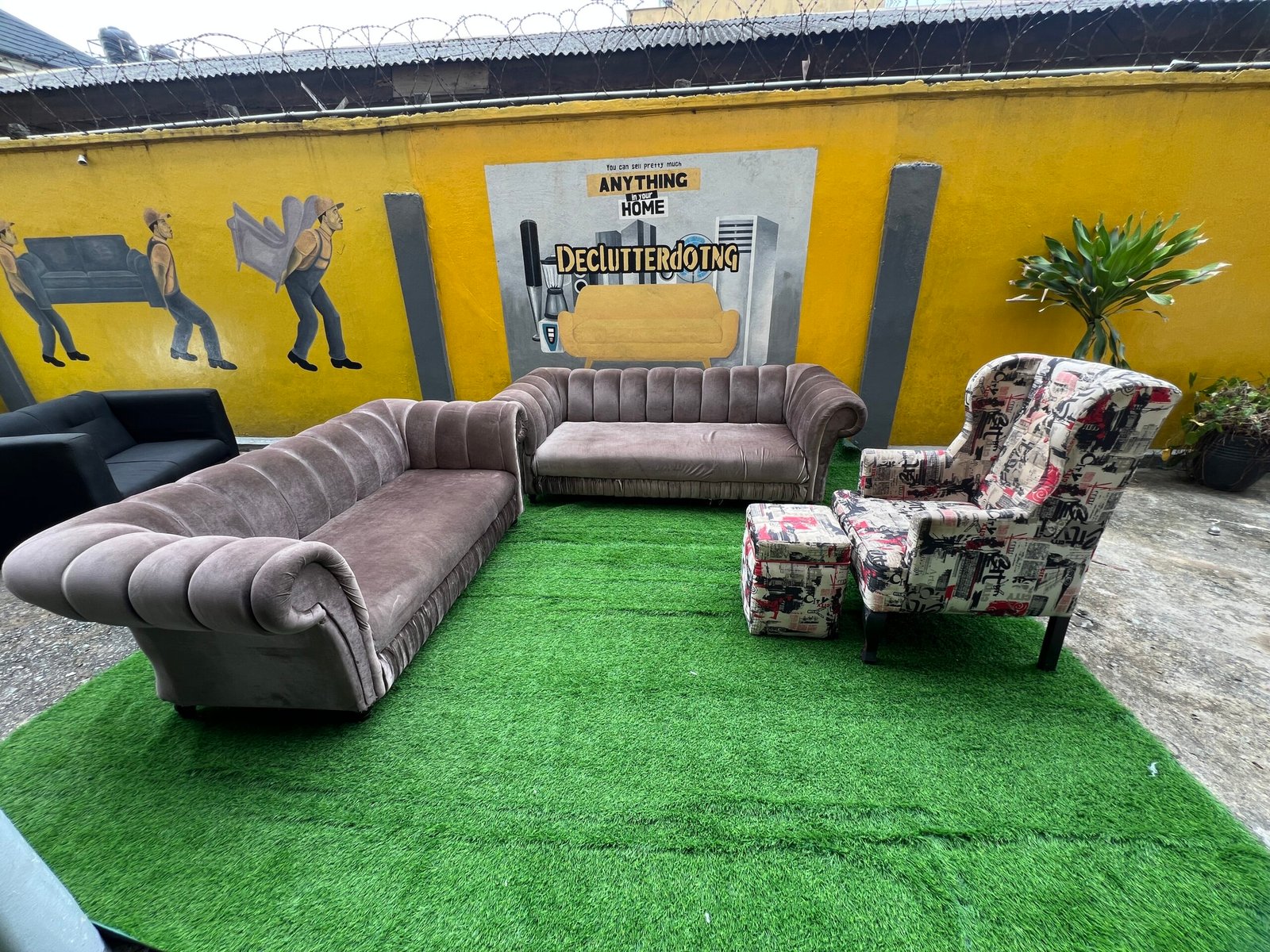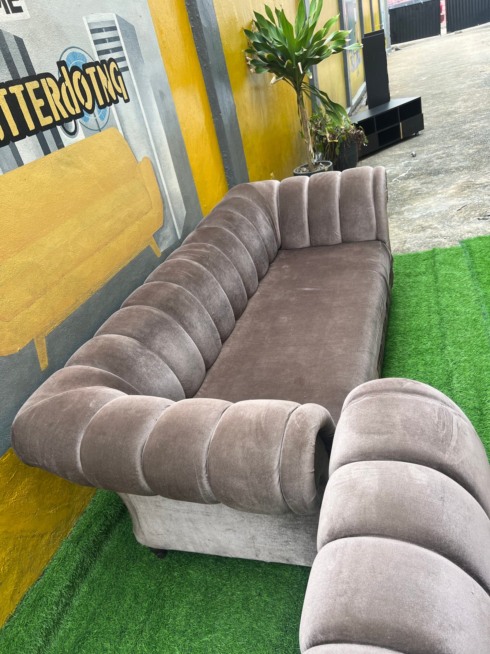 Neatly Used Seven Seater Sofa Set Plus One Masareti Newspaper Accent Chair And Ottoman( Needs Cleaning)