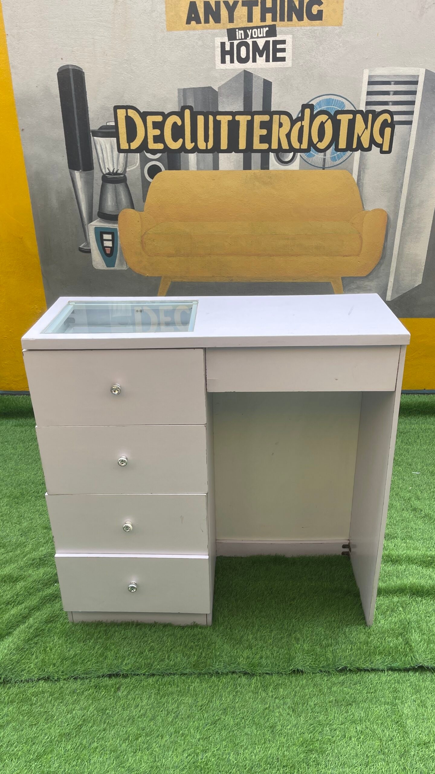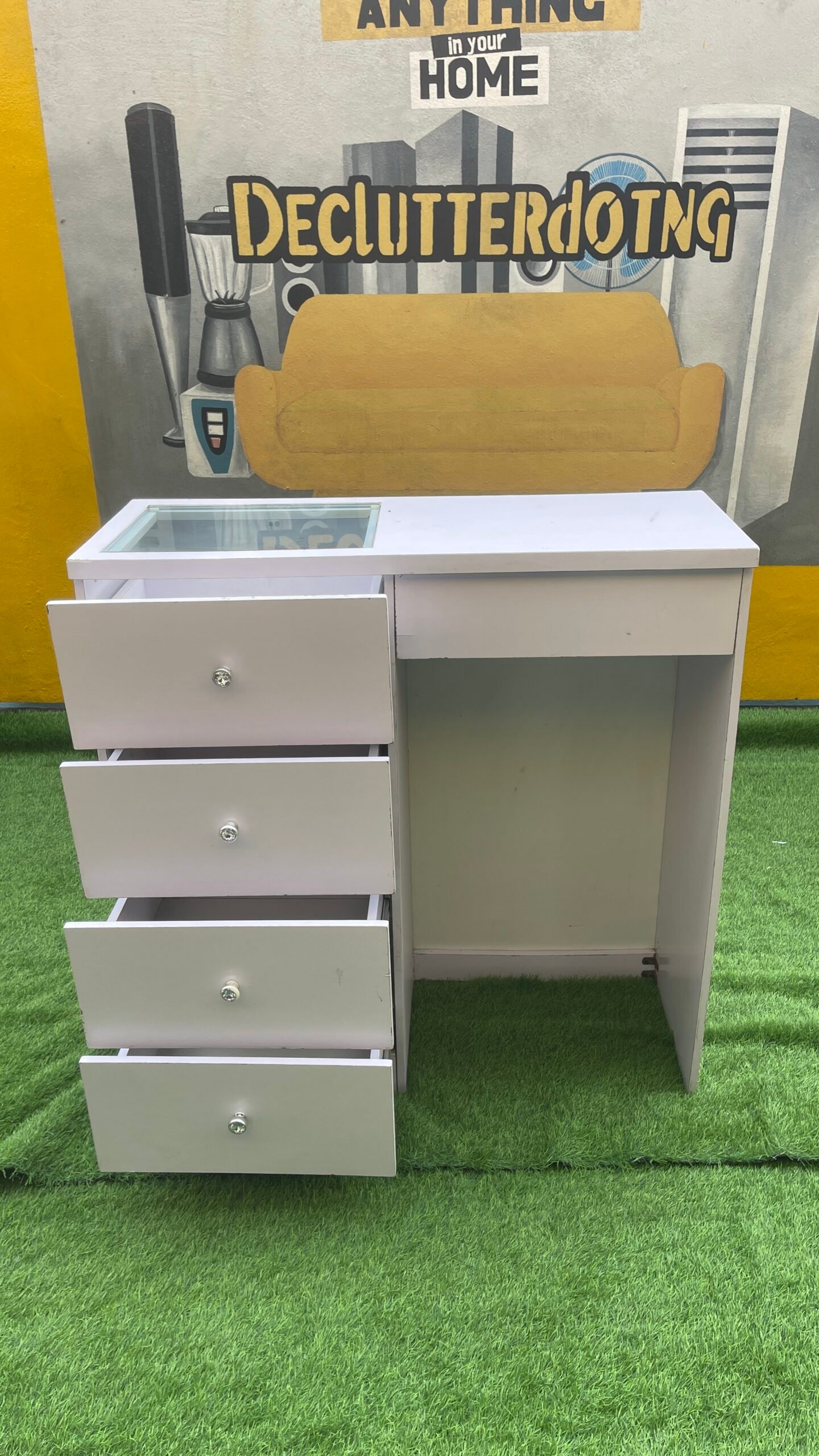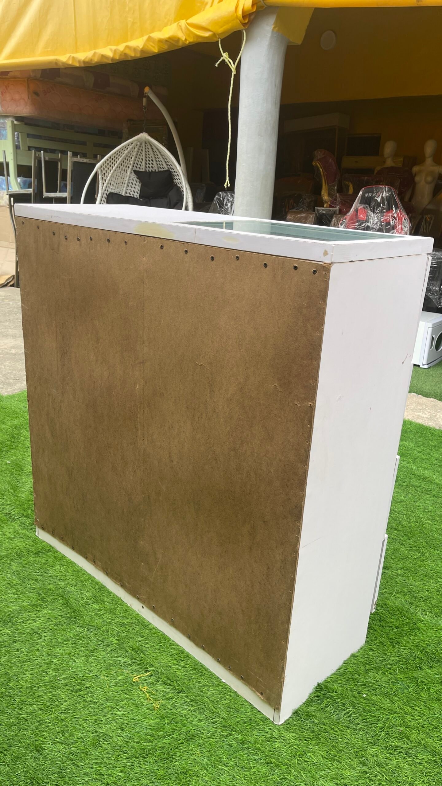 Neatly Used White Multipurpose Cabinet With Glass Top