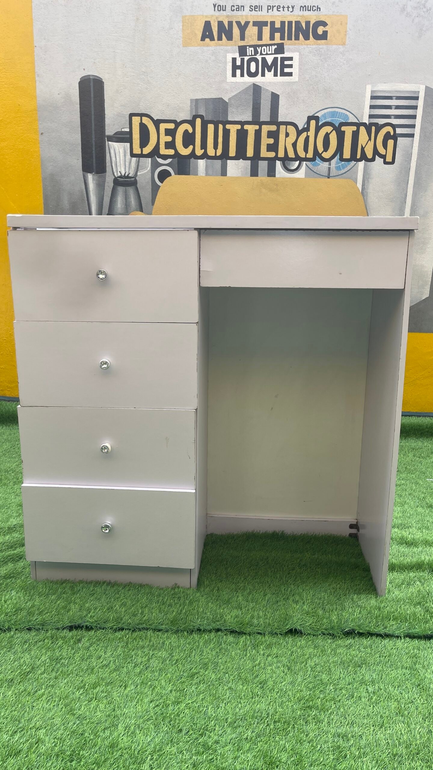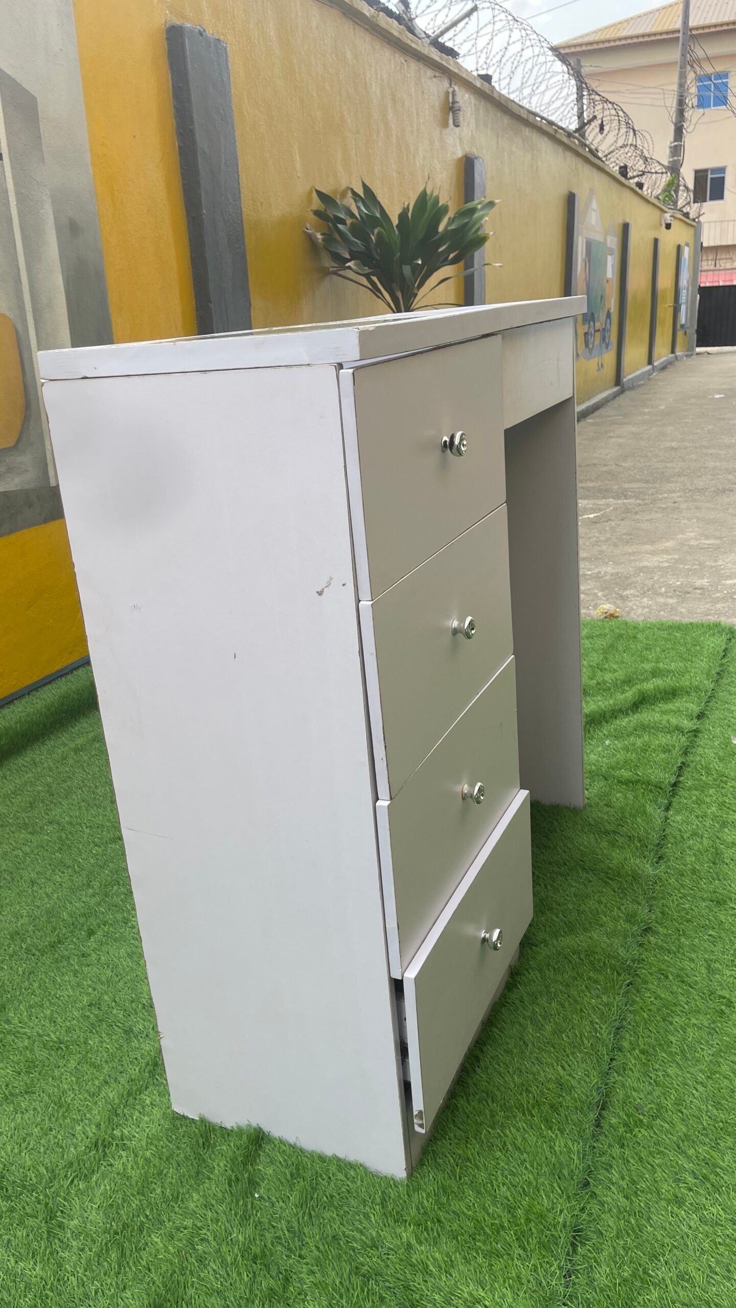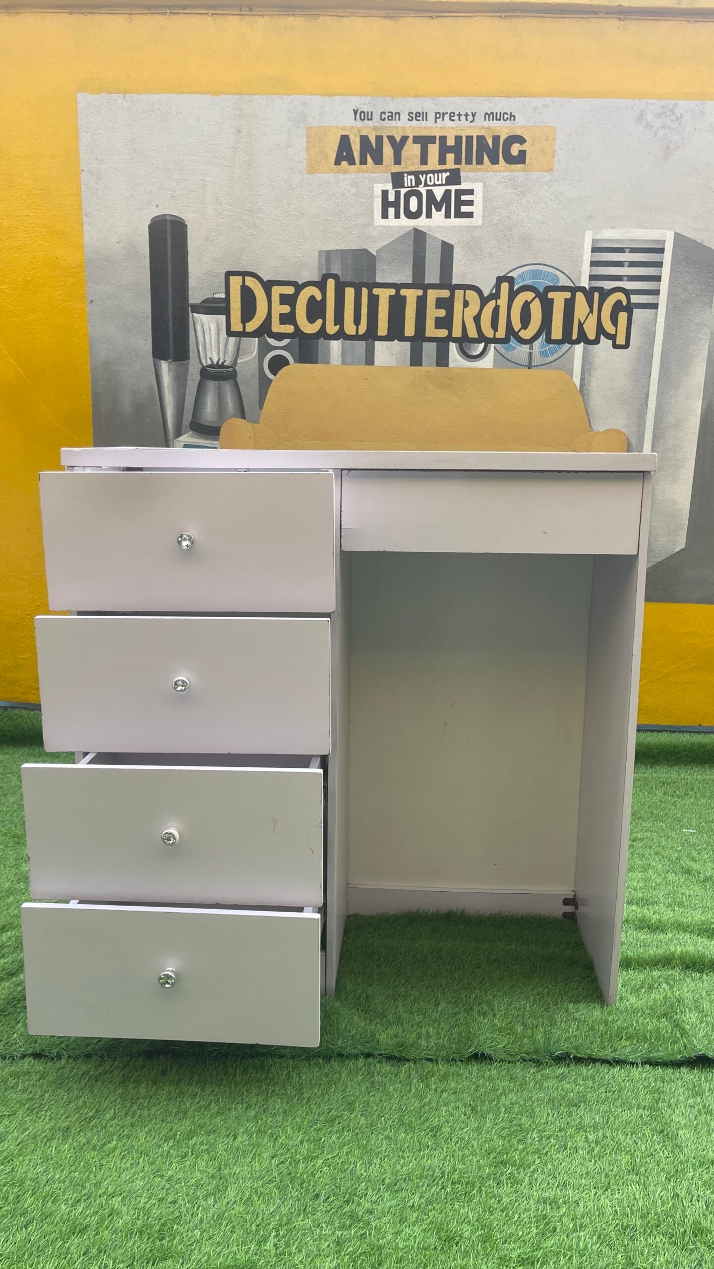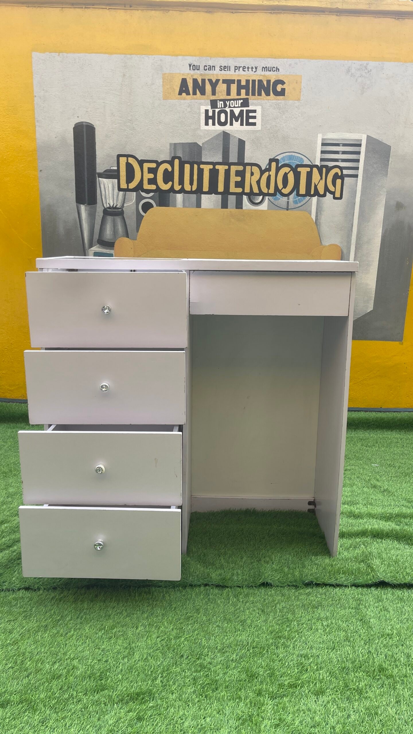 Neatly Used White Multipurpose Cabinet With Glass Top
