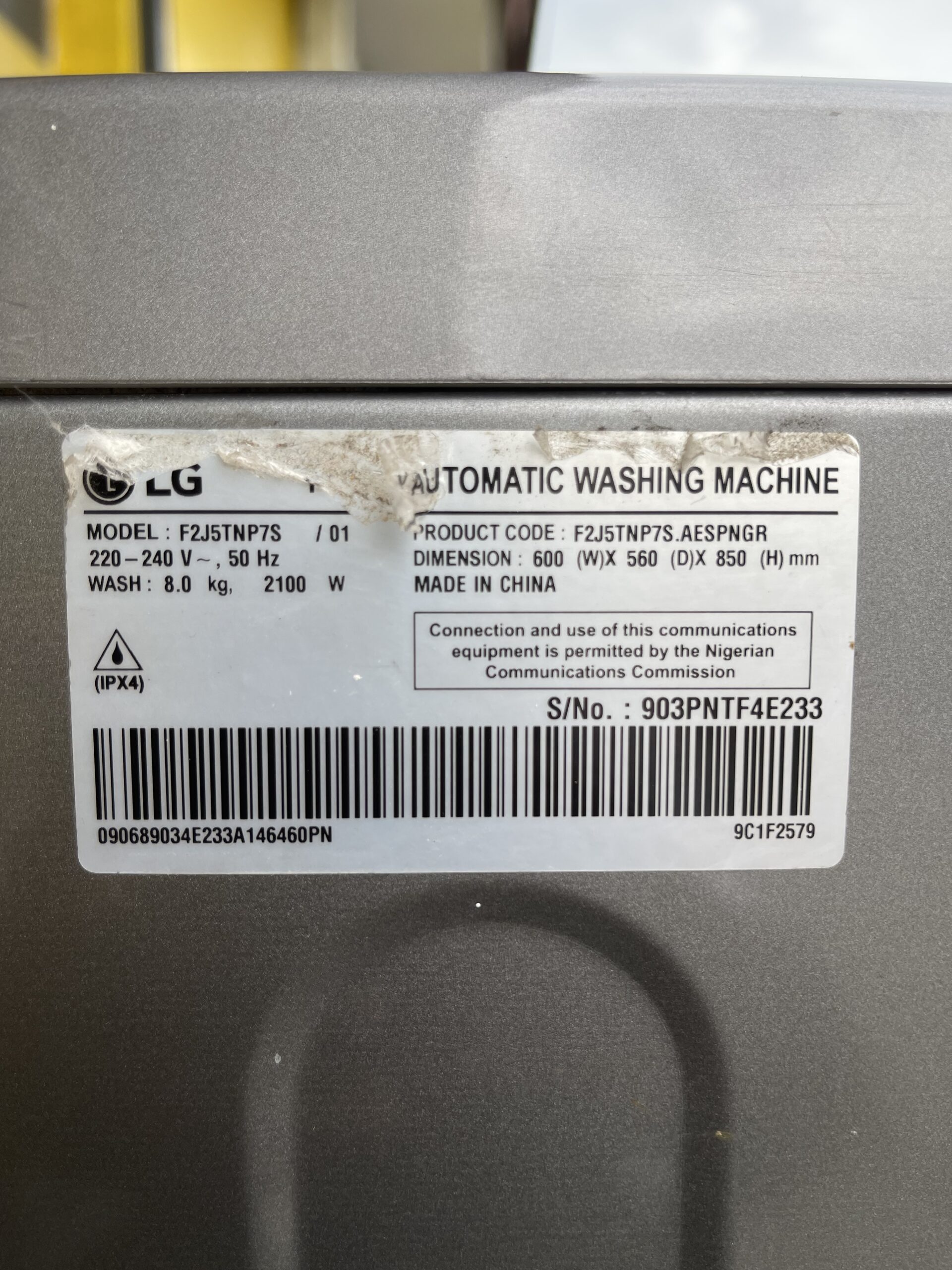 Relatively new 8kg Front Loader Fully Automactic Inverter Washing machine(F2J5TNP7S)