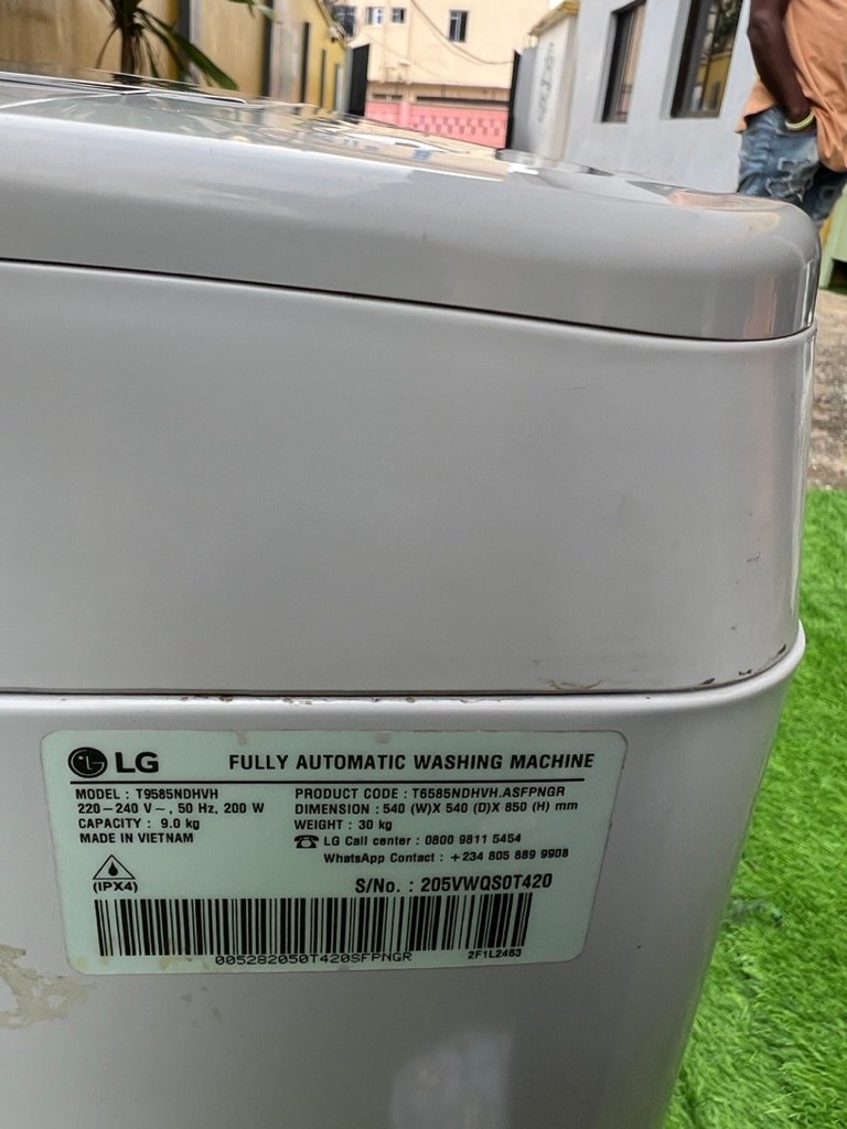 Relatively New 9KG LG Top Loader Fully Automatic (T9585NDHVH) Washing Machine