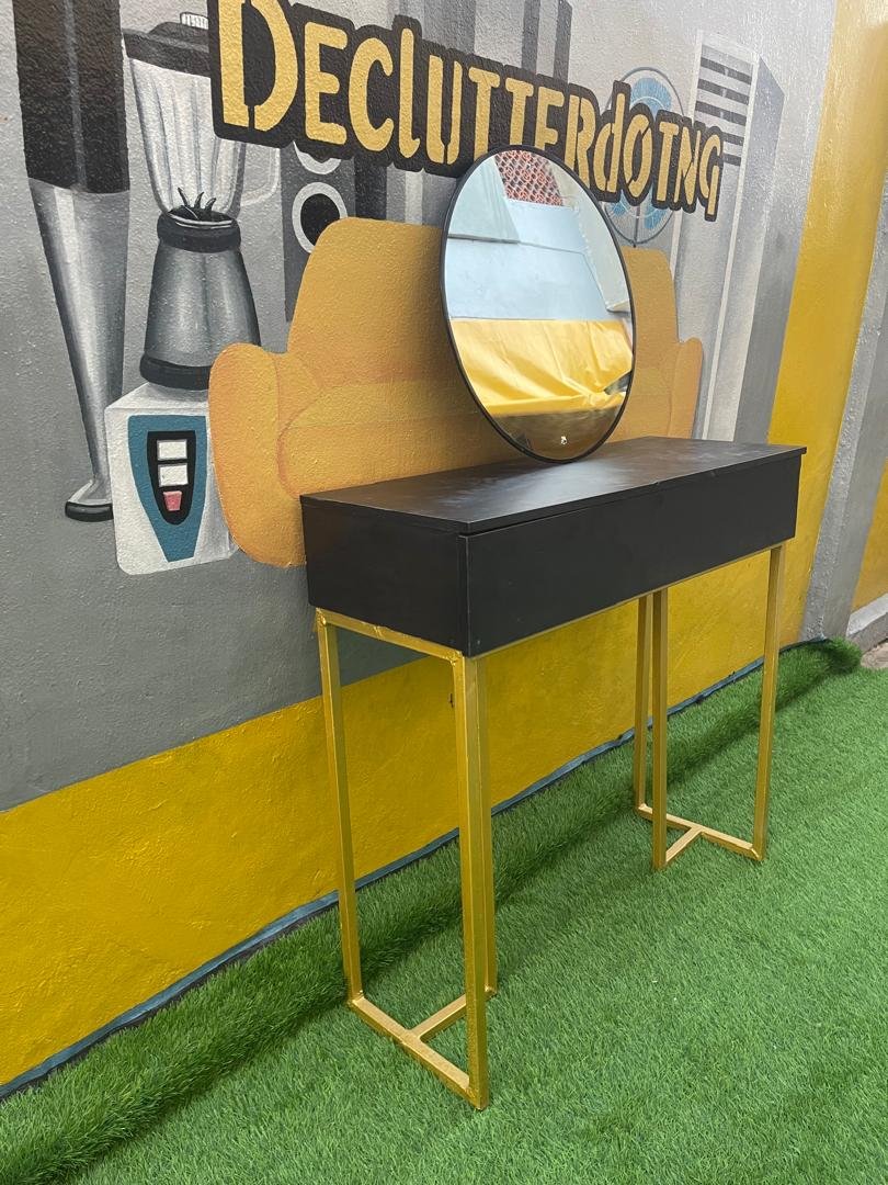 Brand New Black with Gold Steel Frame Console with Mirror