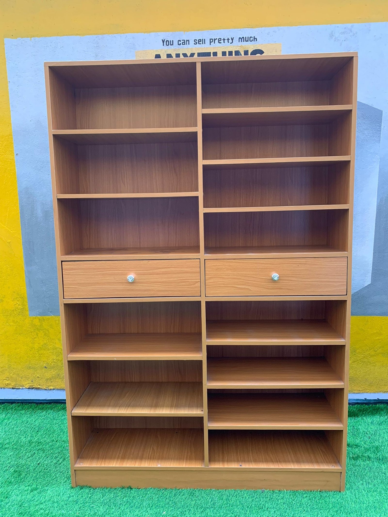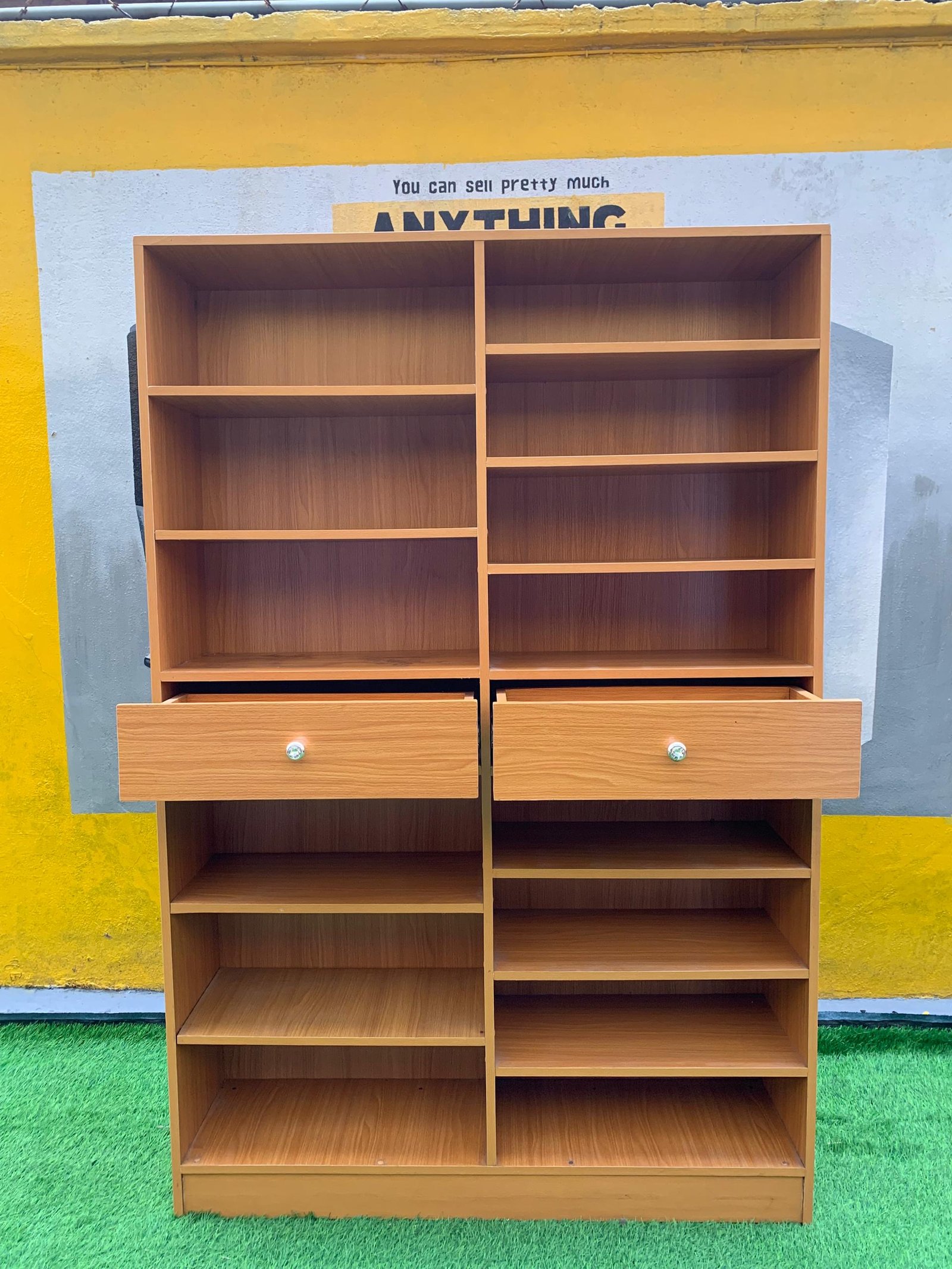 Relatively New Top Quality Golden Brown Multipurpose Open Shelf With Drawer