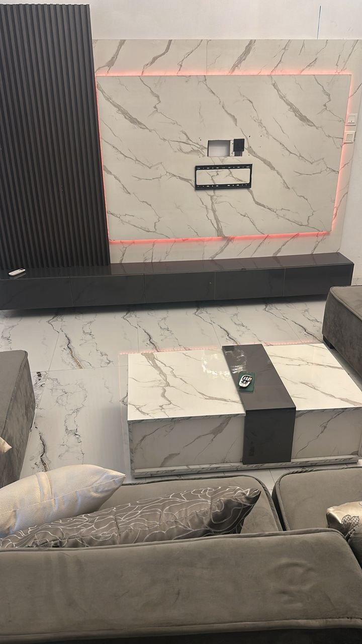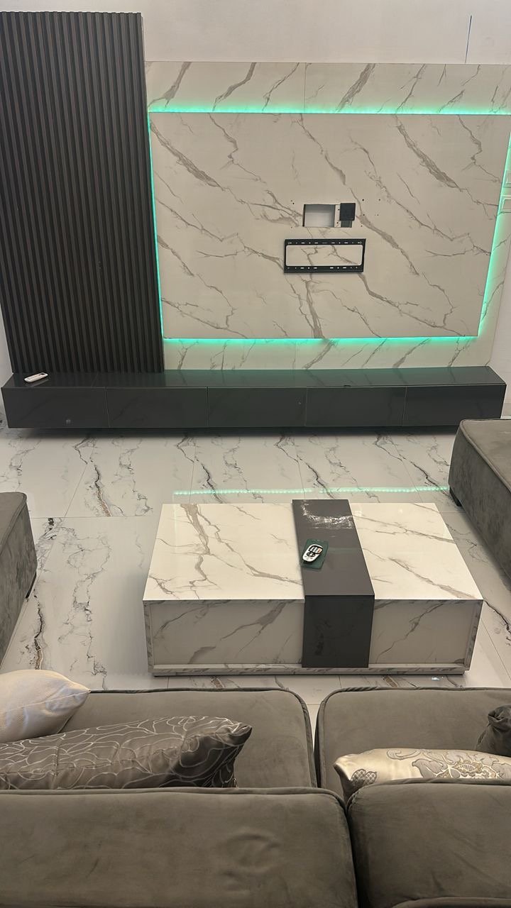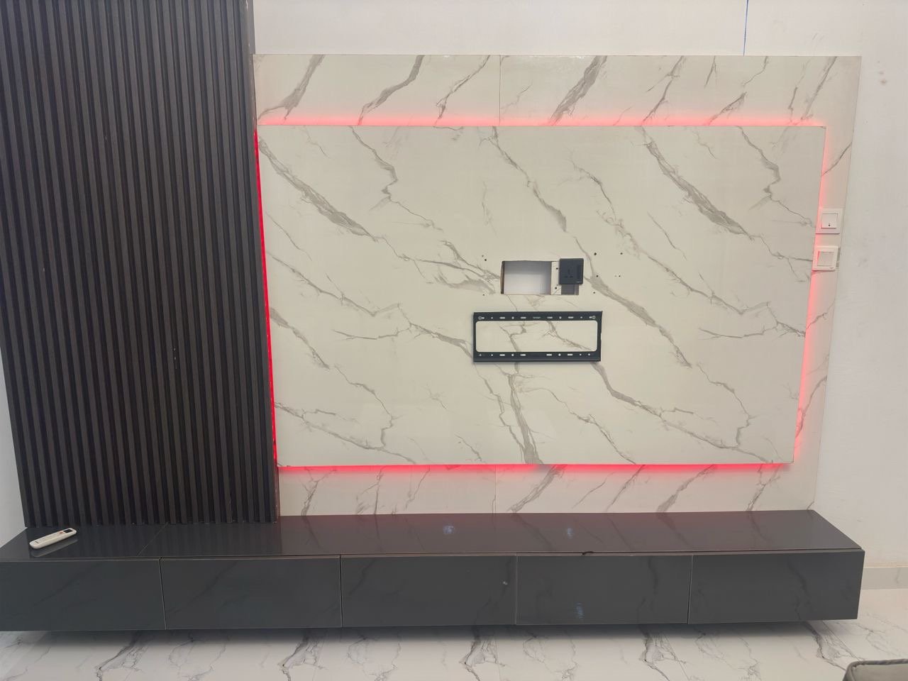 Relatively New Top Quality High Glossy HDF Wood Tv Console With Wall Pannel Cladding And Led Lightning