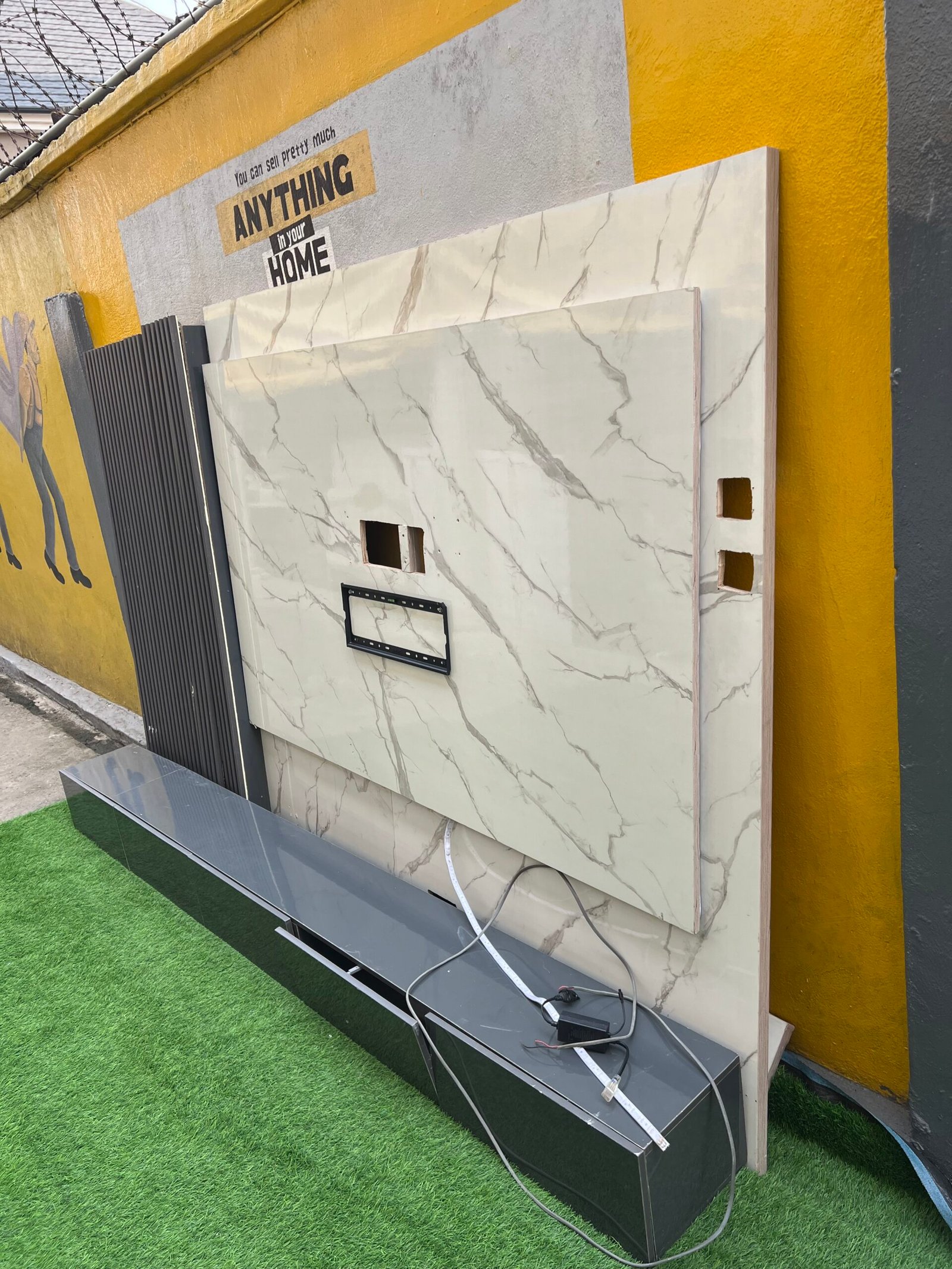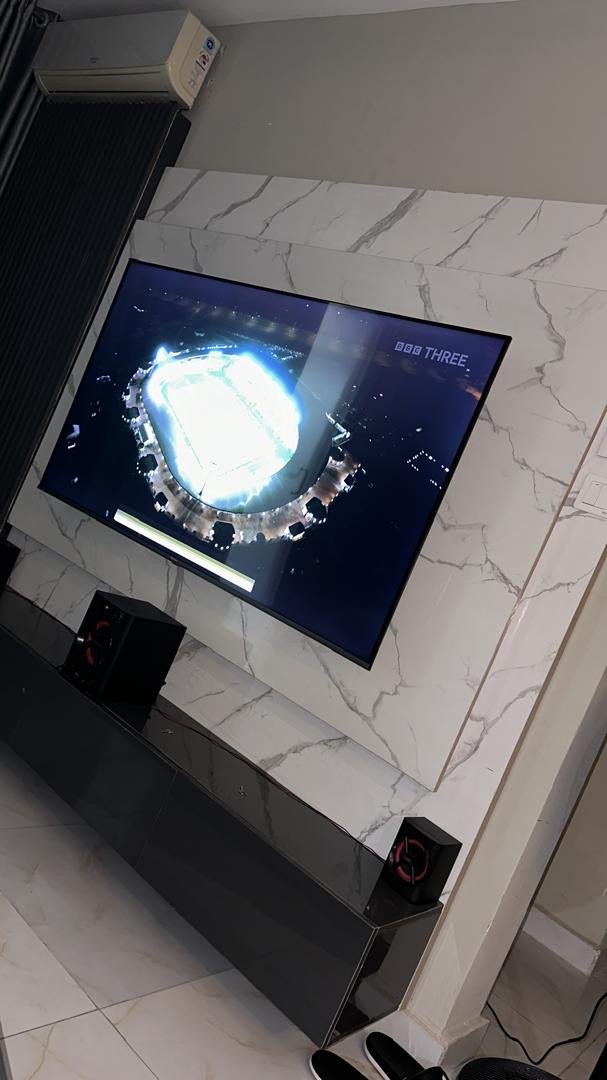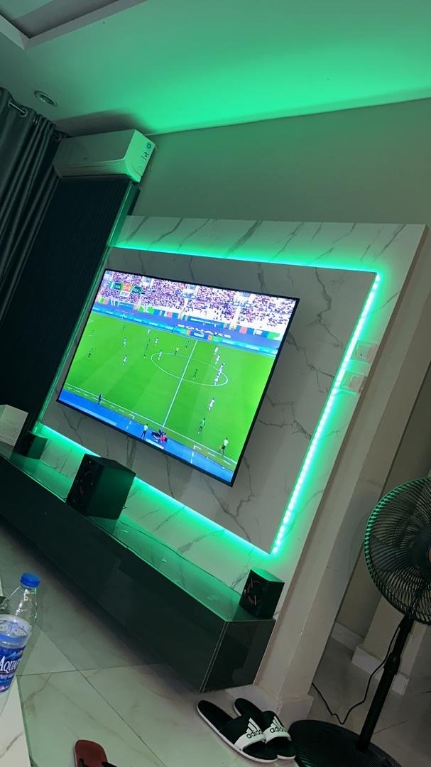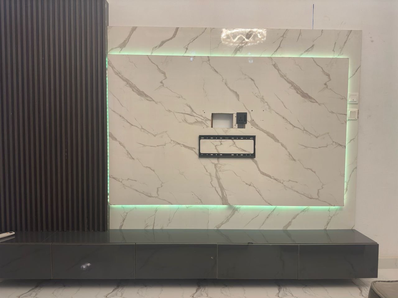 Relatively New Top Quality High Glossy HDF Wood Tv Console With Wall Pannel Cladding And Led Lightning